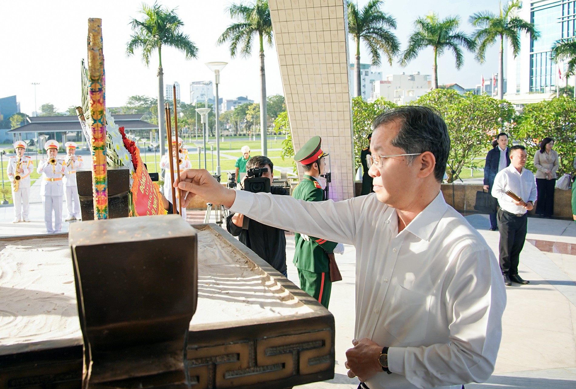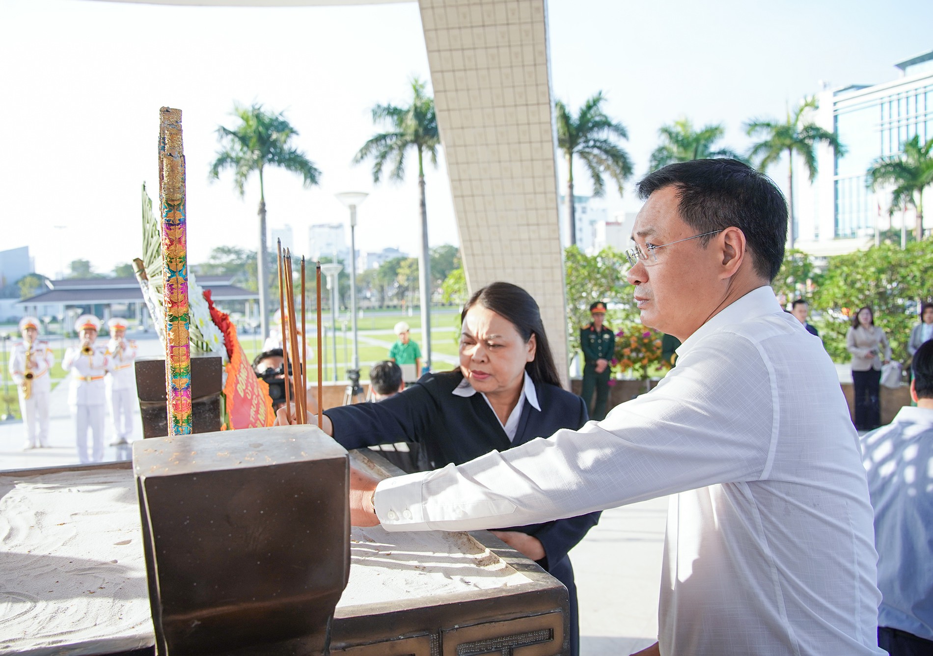Thường trực Ban Bí thư Trần Cẩm Tú dâng hương tại Đài Tưởng niệm thành phố
