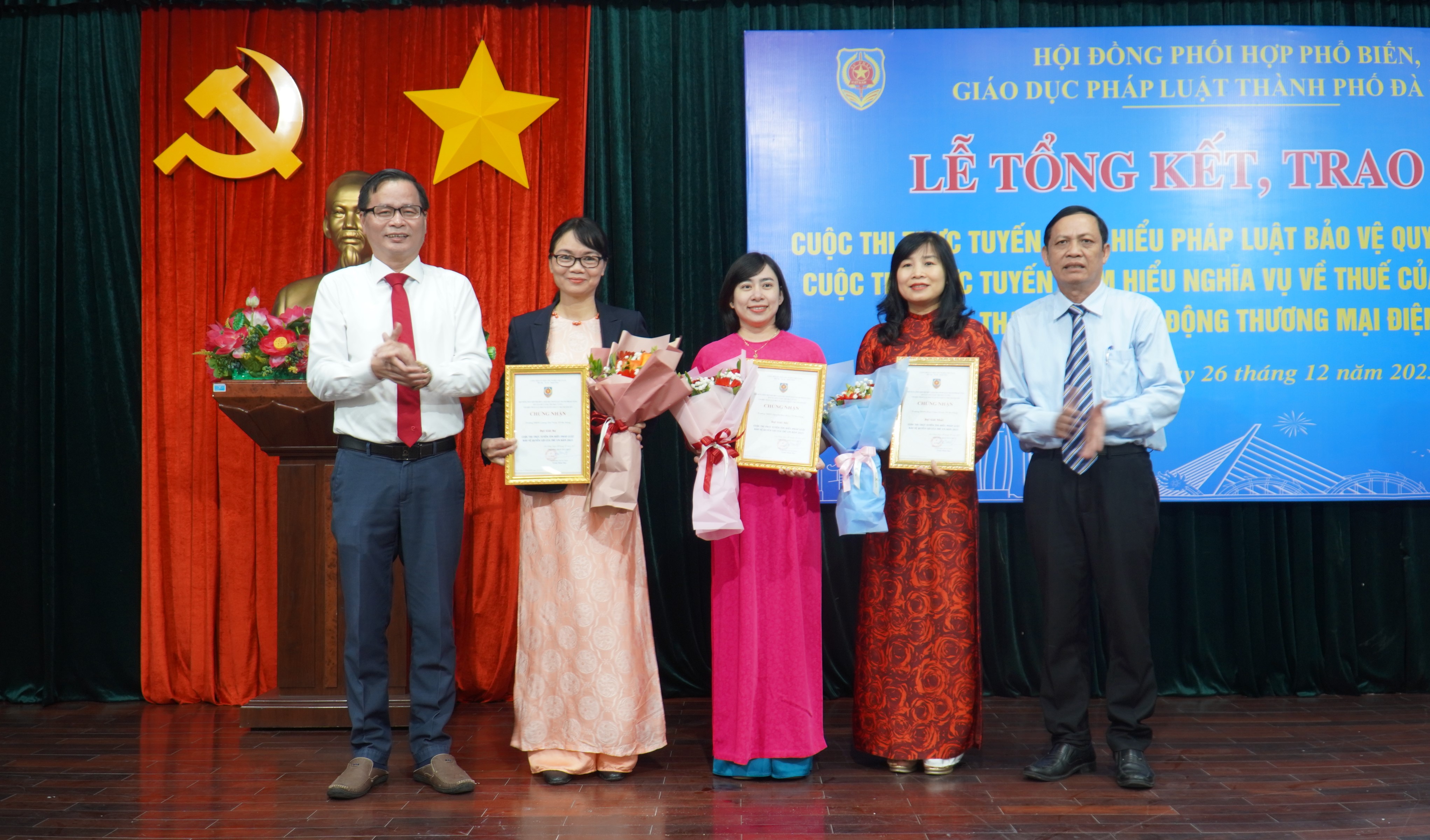 Chiều 26-12, Hội đồng Phối hợp phổ biến, giáo dục pháp luật thành phố Đà Nẵng tổ chức lễ tổng kết, trao giải Cuộc thi trực tuyến “Tìm hiểu pháp luật bảo vệ quyền lợi của trẻ em năm 2025” và Cuộc thi “Tìm hiểu nghĩa vụ về thuế của tổ chức, cá nhân tham gia hoạt động thương mại điện tử”.