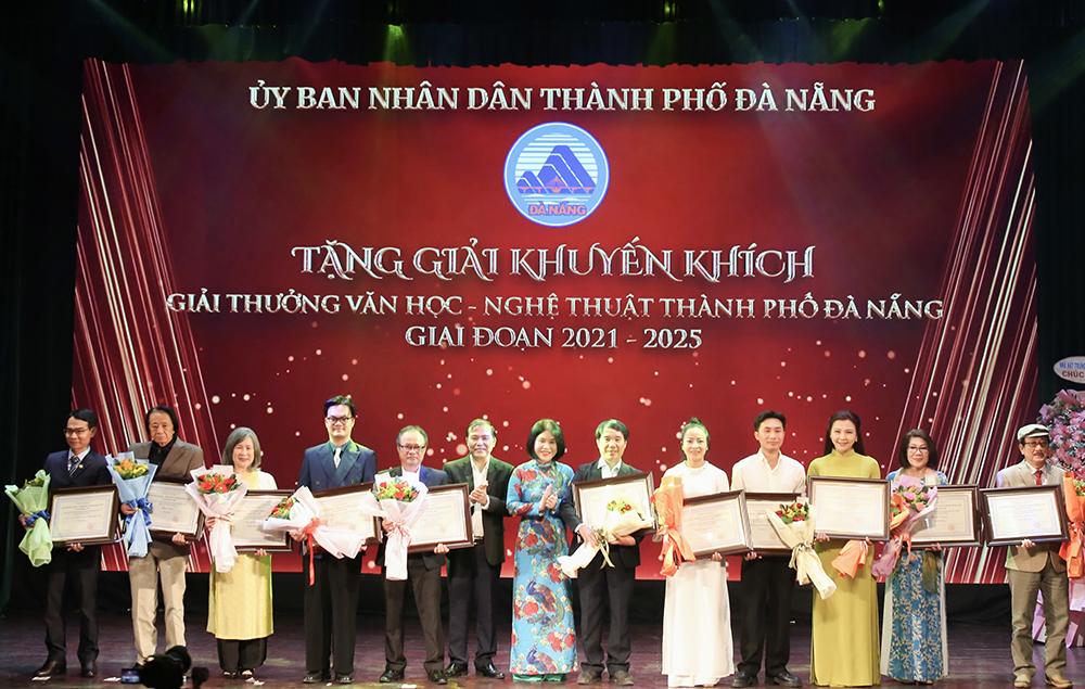 Sáng 15-01, UBND thành phố tổ chức Lễ trao Giải thưởng Văn học - Nghệ thuật thành phố Đà Nẵng, giai đoạn 2021-2025. Dự buổi lễ có Phó Bí thư Thường trực Thành ủy Nguyễn Đình Vĩnh; Trưởng Ban Tuyên giáo và Dân vận Thành ủy Huỳnh Thị Thùy Dung; Phó Chủ tịch HĐND thành phố Đoàn Ngọc Hùng Anh; Phó Chủ tịch UBND thành phố Nguyễn Thị Anh Thi - Trưởng Ban Tổ chức xét tặng Giải thưởng Văn học – Nghệ thuật thành phố Đà Nẵng, giai đoạn 2021-2025.