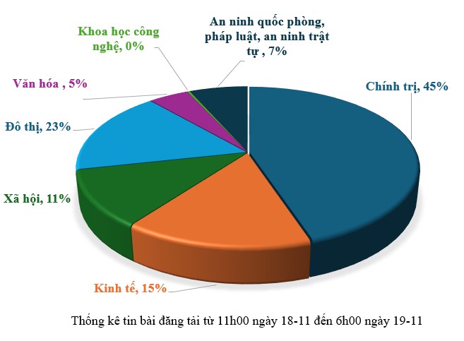 Từ 11h00 ngày 18-11 đến 6h00 ngày 19-11, có khoảng 334 tin, bài báo viết về thành phố Đà Nẵng.