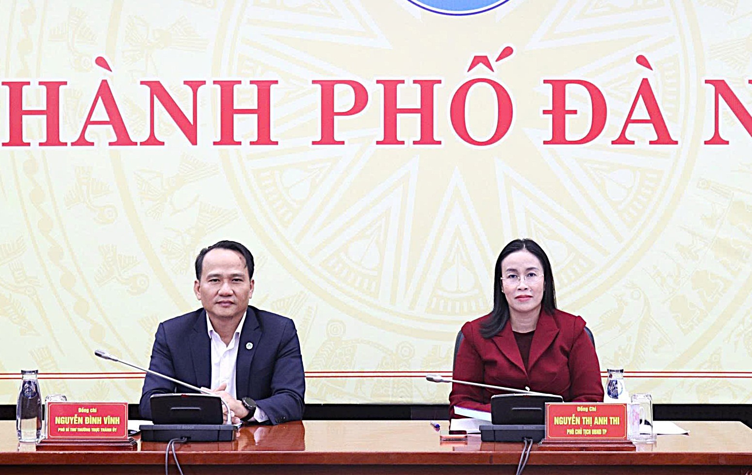 Tại điểm cầu Đà Nẵng, Phó Bí thư Thường trực Thành ủy Nguyễn Đình Vĩnh và Phó Chủ tịch UBND thành phố Nguyễn Thị Anh Thi đồng chủ trì Hội nghị.