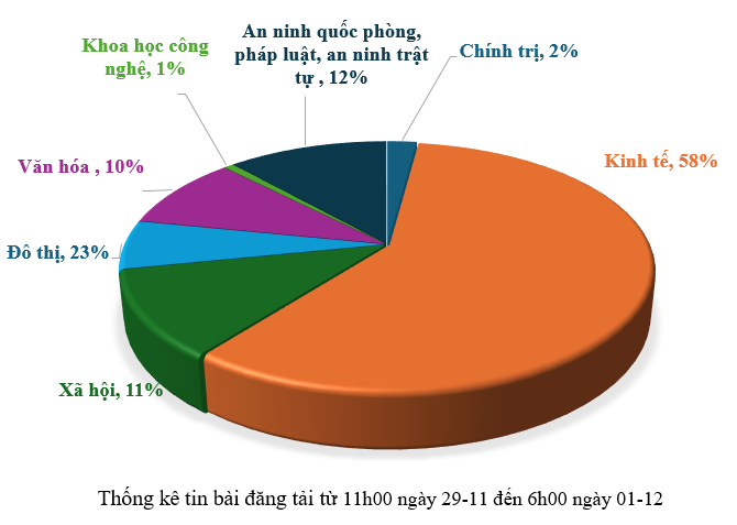 Từ 11h00 ngày 29-11 đến 6h00 ngày 01-12, có khoảng 284 tin, bài báo viết về thành phố Đà Nẵng.