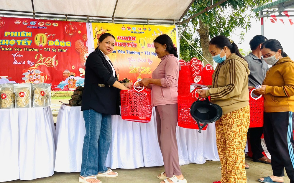 Ủy ban MTTQ Việt Nam xã Duy Xuyên vừa tổ chức phiên Chợ tết 0 đồng Xuân Bính Ngọ 2026 dành cho các hộ nghèo, hộ cận nghèo, hộ khó khăn và các hội viên hội Tù yêu nước trên địa bàn.