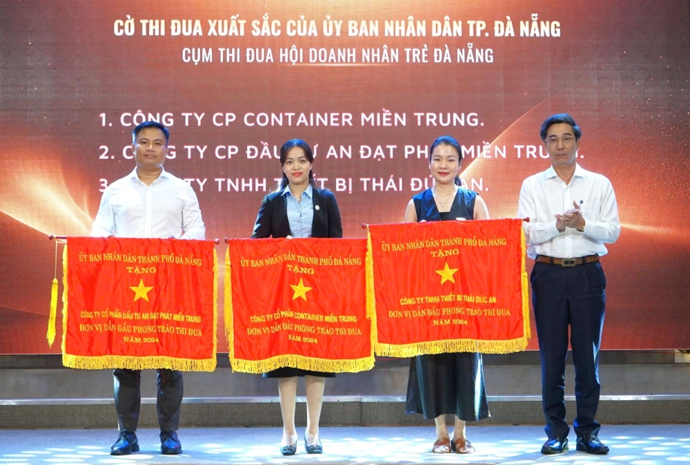 Dịp này, UBND thành phố trao Cờ thi đua cho 3 tập thể dẫn đầu phong trào thi đua năm 2024 gồm: Công ty CP Container Miền Trung, Công ty CP Đầu tư An Đạt Phát Miền Trung và Công ty TNHH Thiết bị Thái Đức An. Chủ tịch UBND thành phố tặng Bằng khen cho 5 tập thể có thành tích xuất sắc trong năm 2024, ghi nhận những đóng góp tích cực của cộng đồng doanh nhân trẻ đối với sự phát triển kinh tế - xã hội của Đà Nẵng.
