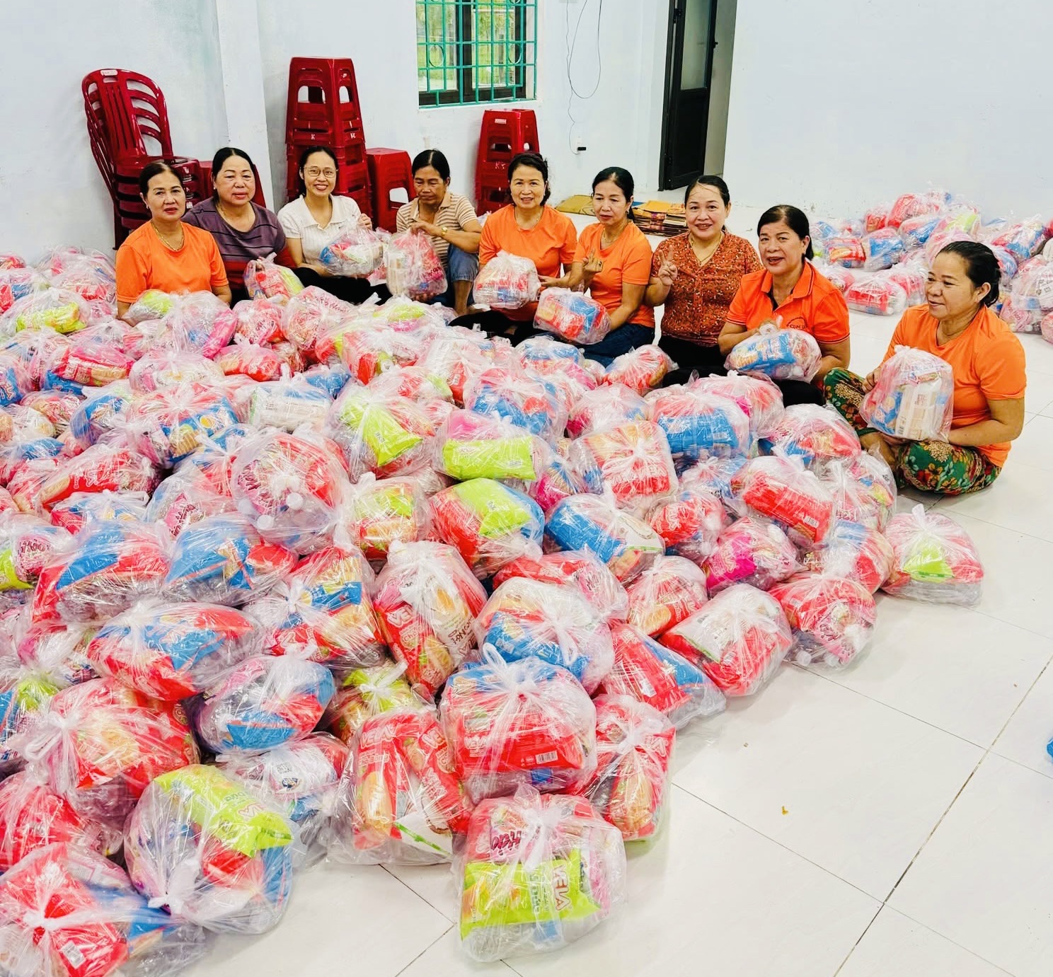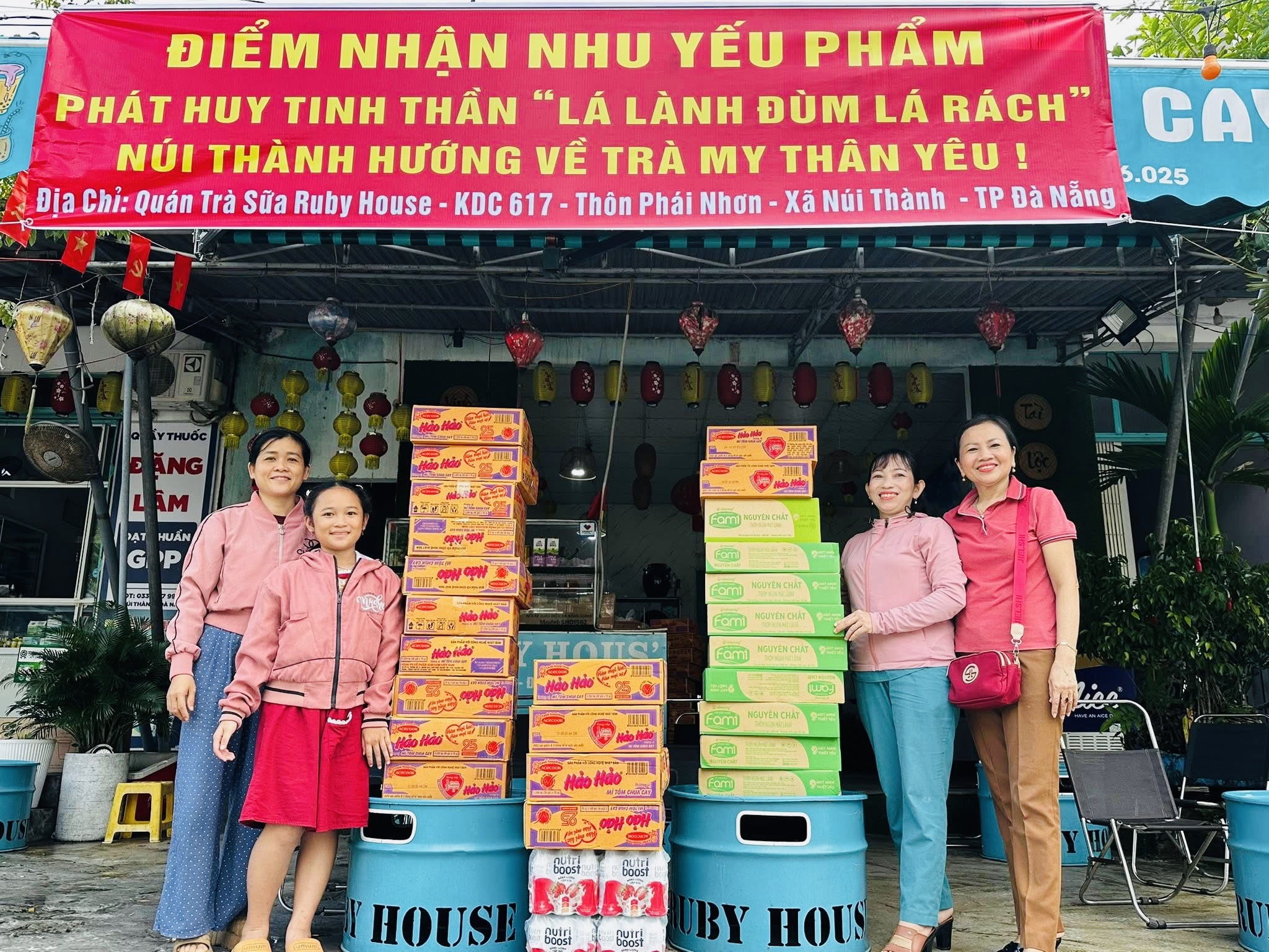 Ở một góc khác của xã Núi Thành, tinh thần sẻ chia ấy lan tỏa mạnh mẽ trong từng khu dân cư. Tại khối phố 5 (xã Núi Thành), chị Lê Thị Thu – Chi hội trưởng Chi hội Phụ nữ đã đứng ra huy động chị em tranh thủ sau giờ tan ca, cùng nhau đóng gói 400 suất quà gồm mì tôm, bánh ngọt, sữa…gửi đến khu vực Điện Bàn và các vùng đang bị chia cắt khác.