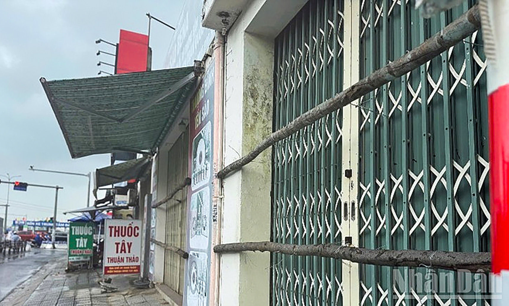 Theo ghi nhận, ngày 21-10, nhiều hộ dân và cơ sở kinh doanh đã chằng chống nhà cửa, dựng các tấm chắn chống ngập nước nhằm bảo vệ tài sản.