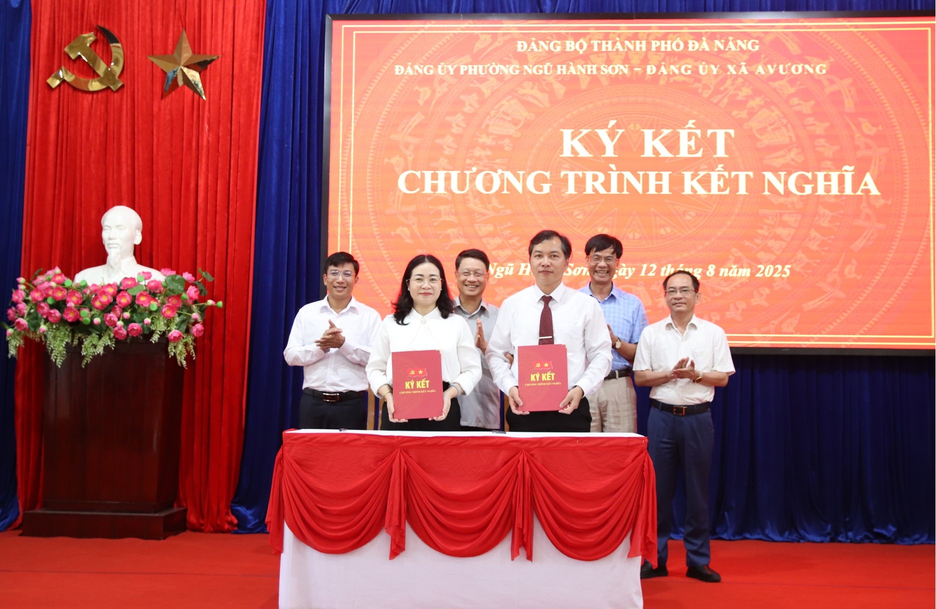 Đảng ủy phường Ngũ Hành Sơn và Đảng ủy xã Avương ký kết chương trình kết nghĩa giữa 2 địa phương vào ngày 12-8 vừa qua.