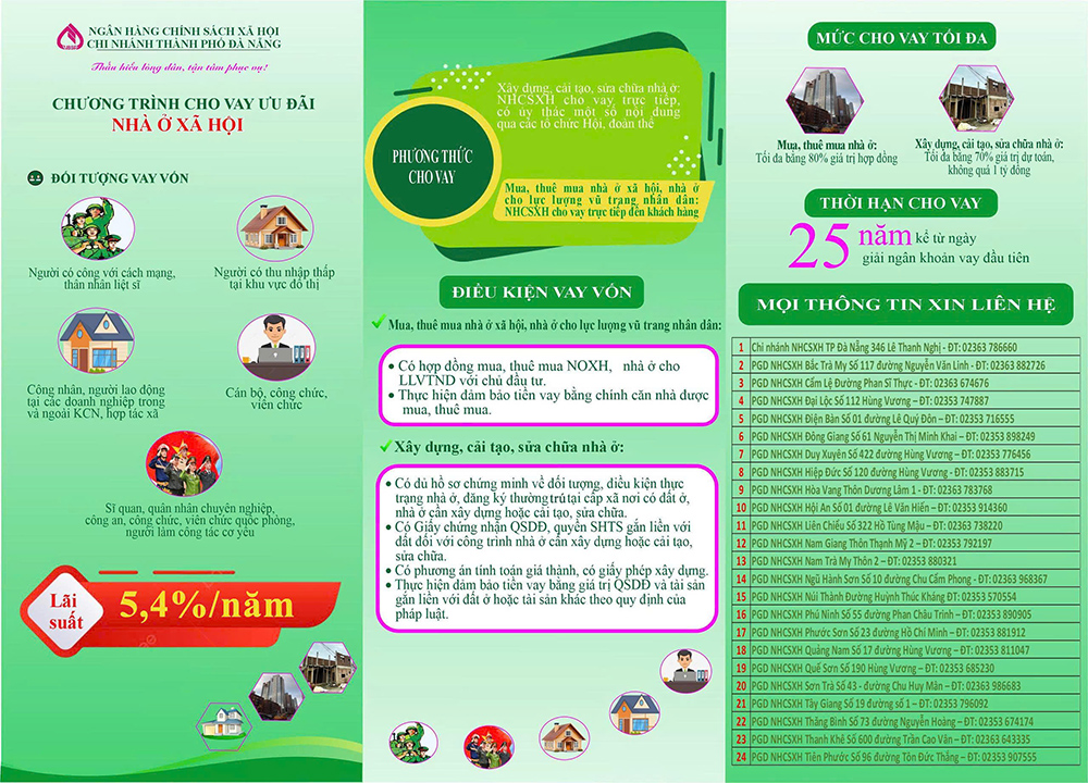 Thực hiện Nghị định số 261/2025/NĐ-CP của Chính phủ, từ ngày 10-10-2025, Chi nhánh Ngân hàng Chính sách xã hội thành phố Đà Nẵng triển khai chương trình cho vay ưu đãi để mua, thuê mua nhà ở xã hội, nhà ở cho lực lượng vũ trang nhân dân; xây dựng hoặc cải tạo, sửa chữa nhà ở với lãi suất 5,4%/năm.
