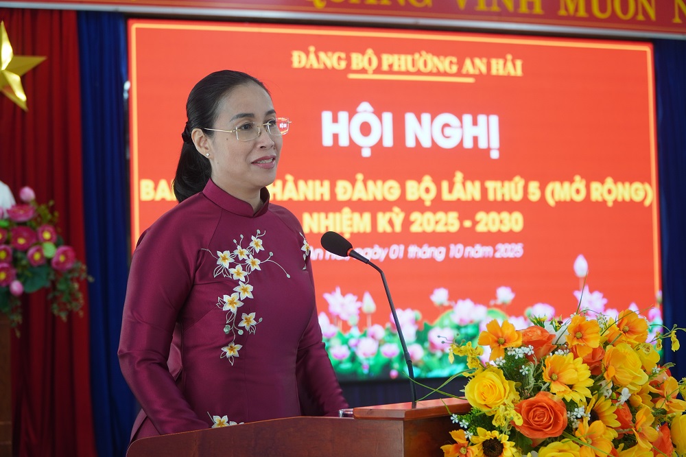 Chiểu 01-10, UBND phường An Hải tổ chức Hội nghị lần thứ 5 Ban Chấp hành Đảng bộ (mở rộng) để đánh giá tình hình công tác quý III năm 2025 và đề ra phương hướng nhiệm vụ quý IV. Đến dự có Phó Chủ tịch UBND thành phố Nguyễn Thị Anh Thi.