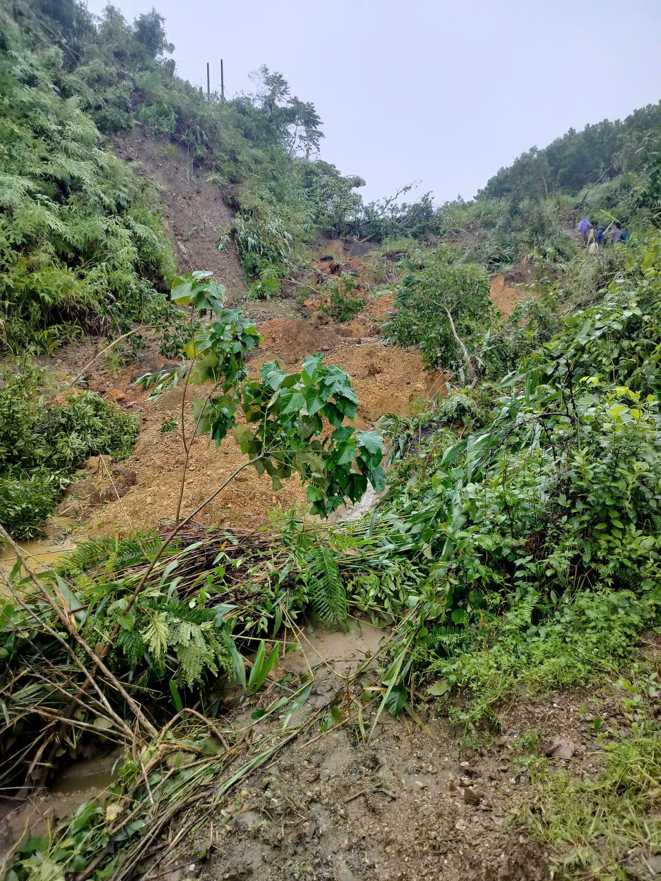Đối với các tuyến đường từ trung tâm xã về các thôn bị sạt lở hơn 25 điểm với khối lượng ước tính hơn 12.000 mét khối, hàng trăm mét đường bê tông bị đứt gãy, nhiều cầu cống bị cuốn trôi nhưng chưa thể khắc phục được. Hiện tại vẫn còn thôn 3 và thôn 5 do khối lượng sạt lở lớn nên bị cô lập hoàn toàn.