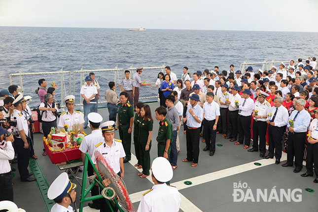 Trong chuyến thăm và làm việc tại quần đảo Trường Sa từ ngày 20 đến 29-5, Đoàn công tác số 15, trong đó có Đoàn lãnh đạo thành phố Đà Nẵng đã làm lễ tưởng niệm các anh hùng liệt sĩ hi sinh khi làm nhiệm vụ trên thềm lục địa phía Nam