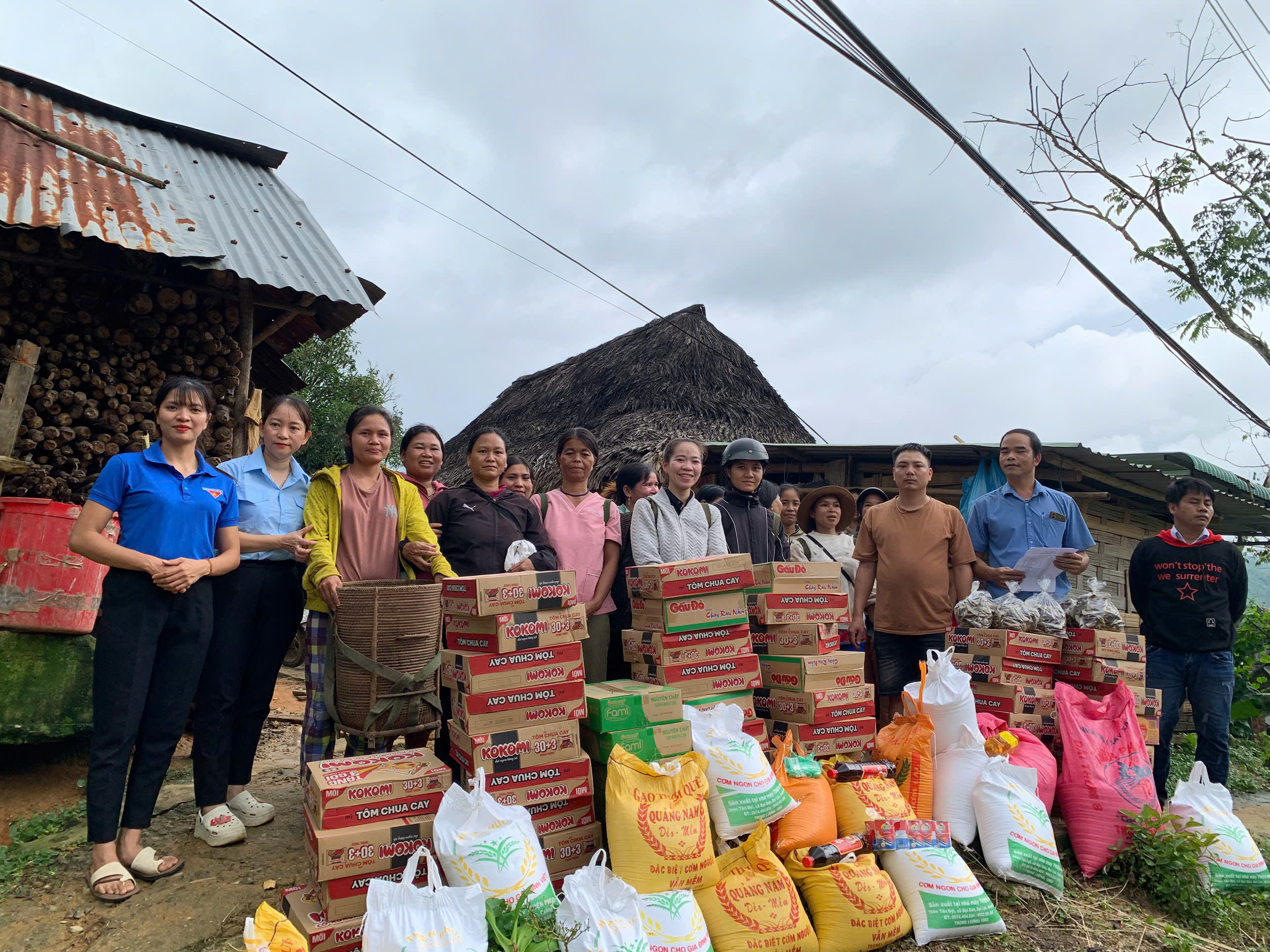 Theo đó, chính quyền địa phương và nhóm thiện nguyện đến tận nơi thăm hỏi, động viên và trao quà cho bà con. Mỗi suất quà trị giá khoảng 300 nghìn đồng, gồm gạo, sữa, mì ăn liền, cá hộp, cá khô và đèn pin. Đoàn cũng hỗ trợ 2 hộ gia đình ông A Rất Cước và A Rất Bay (thôn A Dinh-xã Đông Giang) có nhà bị sập, mỗi hộ 2 triệu đồng.