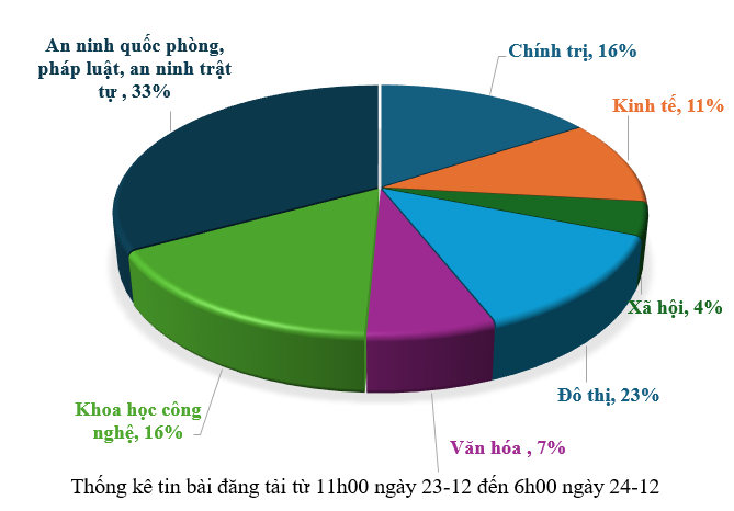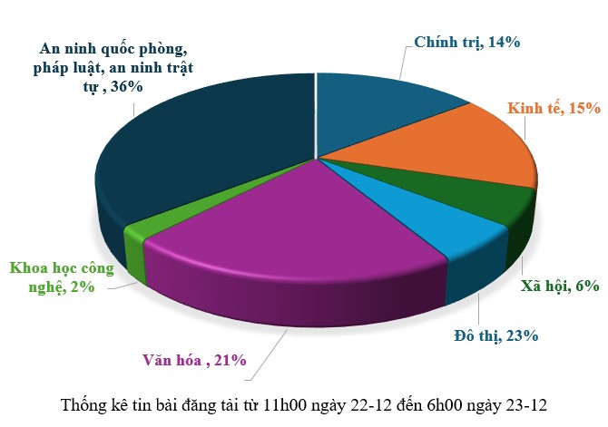 Từ 11h00 ngày 22-12 đến 6h00 ngày 23-12, có khoảng 138 tin, bài báo viết về thành phố Đà Nẵng.