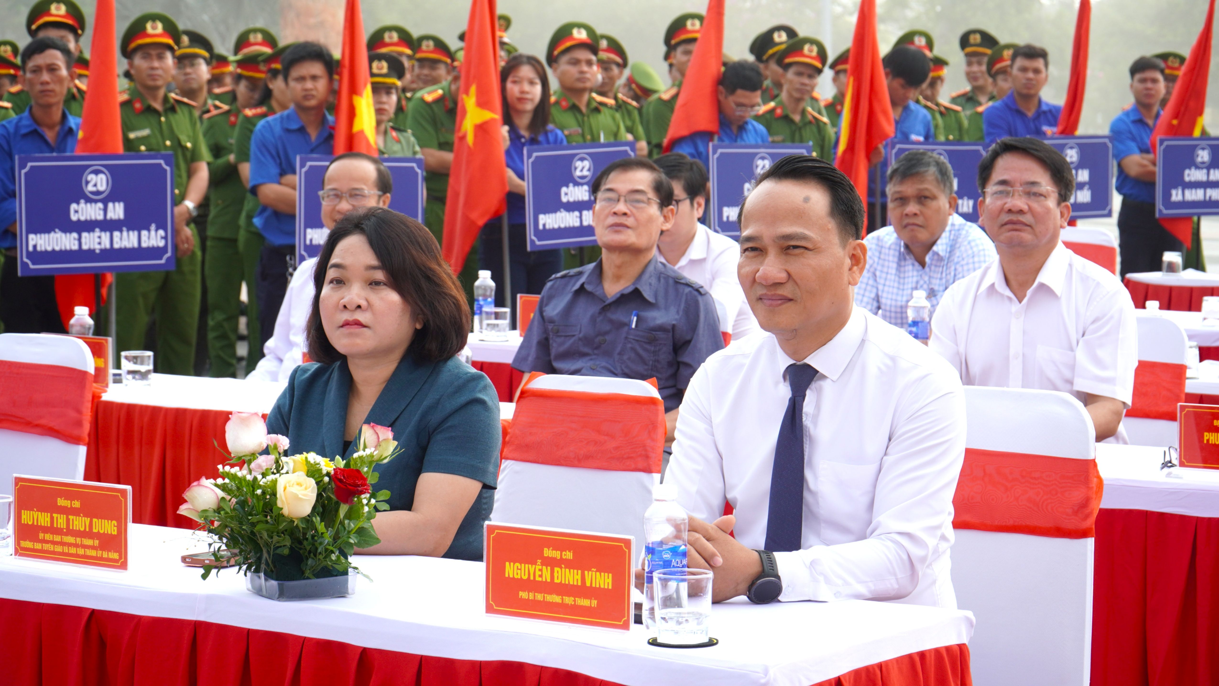 Dự lễ tại Quảng trường 29-3 (phường Hòa Cường) có Phó Bí thư Thành ủy Ngô Xuân Thắng, Phó Chủ tịch UBND thành phố Lê Quang Nam, cùng đại diện các sở, ban, ngành, địa phương và đông đảo lực lượng chức năng.