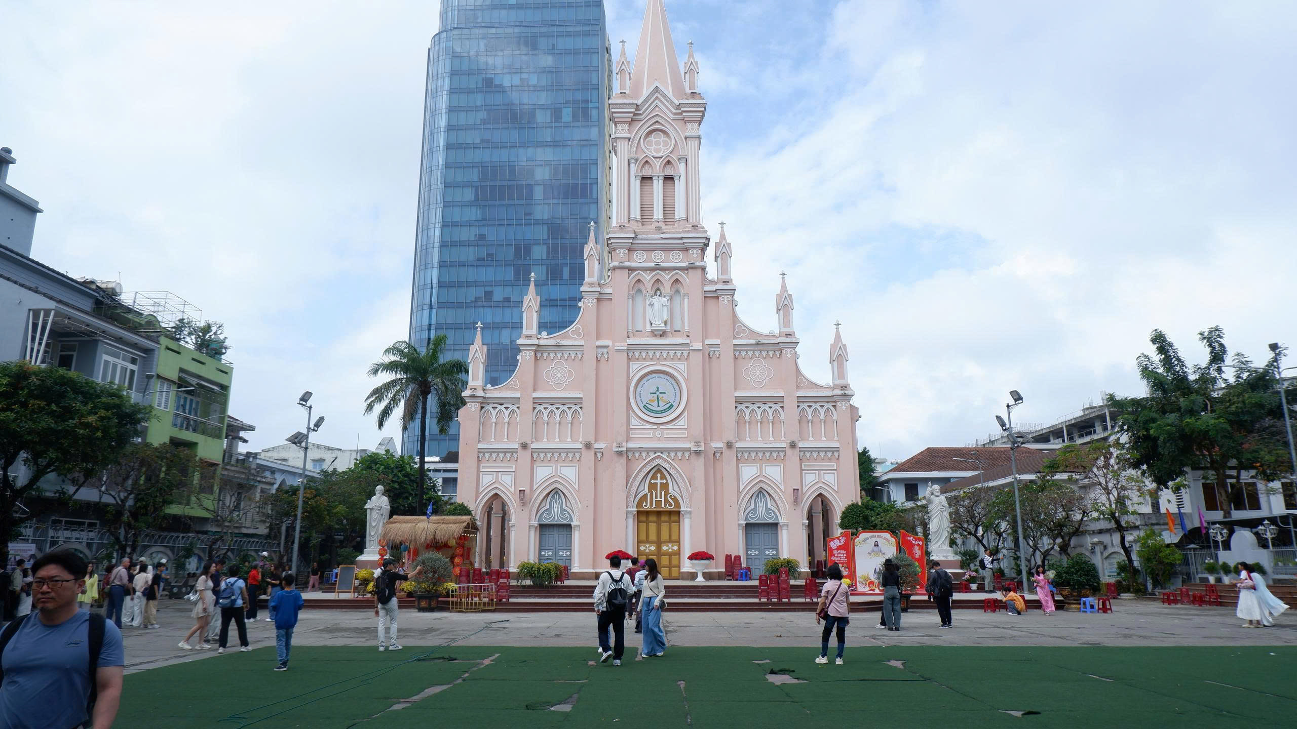 Du khách quốc tế tham quan, chụp ảnh tại khuôn viên Nhà thờ Chính tòa Đà Nẵng trong những ngày đầu Xuân Bính Ngọ 2026