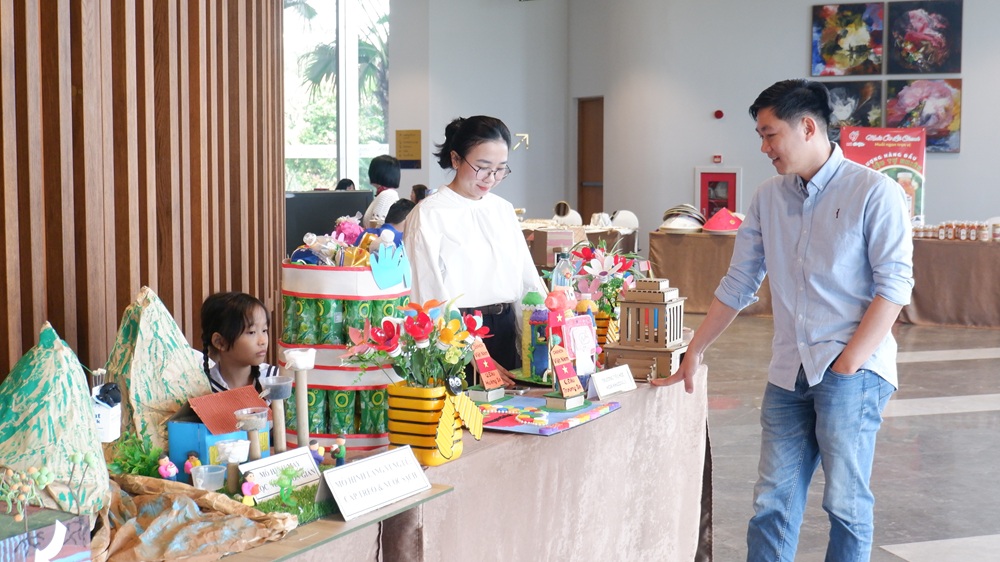 Bên lề hội thảo còn diễn ra hoạt động trưng bày các gian hàng giới thiệu sản phẩm tái chế do học sinh trên địa bàn thành phố thực hiện. Từ các vật liệu quen thuộc như chai nhựa, giấy, bìa carton, vỏ lon hay các vật dụng đã qua sử dụng, các em đã sáng tạo thành nhiều sản phẩm hữu ích như đồ trang trí, đồ dùng học tập và vật dụng sinh hoạt.