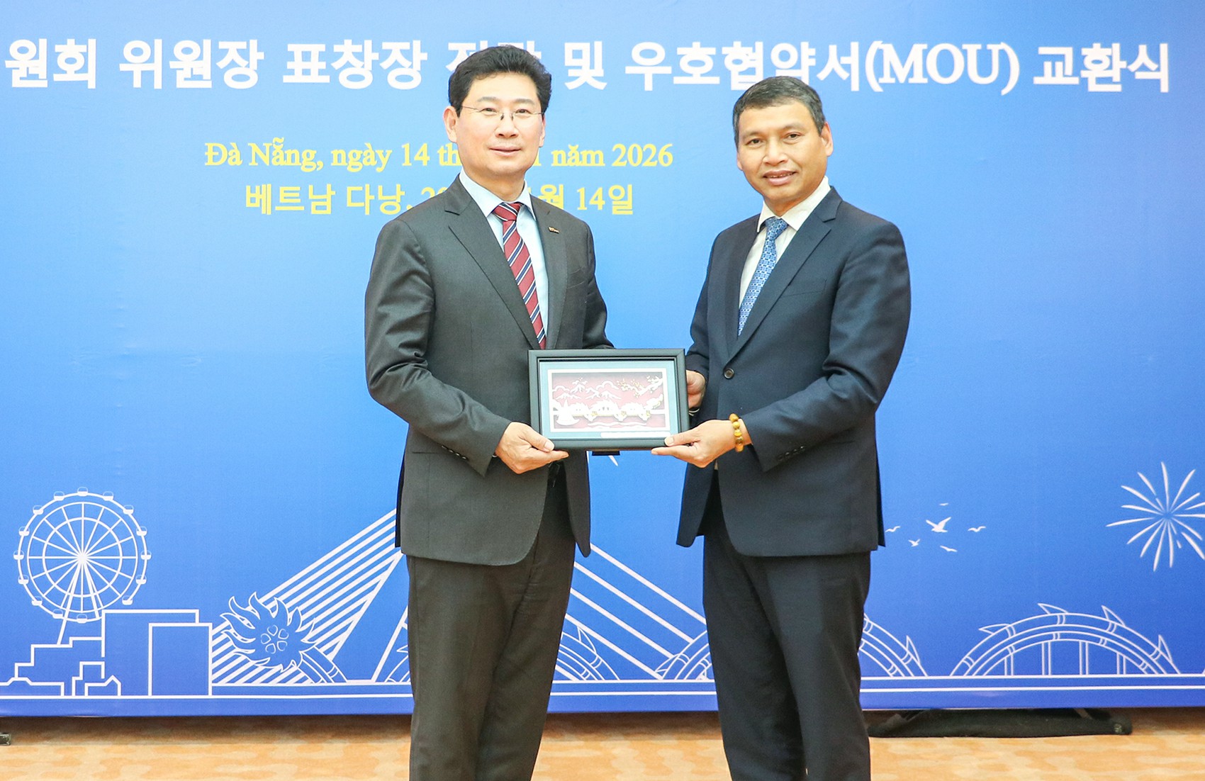 Dịp này, hai bên ký và trao thỏa thuận thiết lập quan hệ hợp tác hữu nghị thành phố Đà Nẵng và thành phố Yongin.