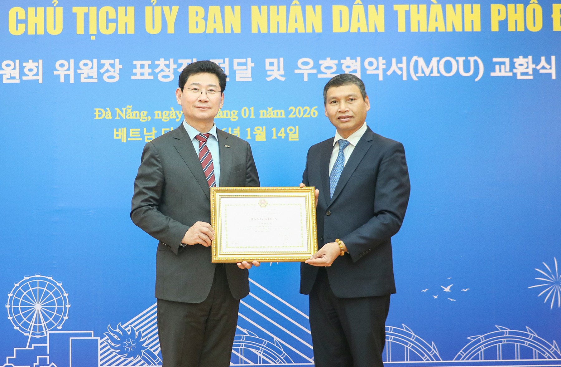Tặng Bằng khen của Chủ tịch UBND thành phố Đà Nẵng cho ông Lee Sang-il, Thị trưởng thành phố đặc biệt Yongin, Hàn Quốc đã có đóng góp tích cực trong hoạt động tăng cường quan hệ hữu nghị, hợp tác quốc tế năm 2025.