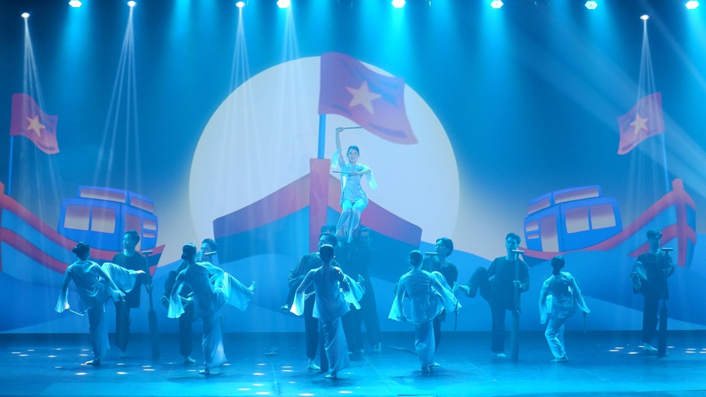 Mở đầu là Huế, nơi tinh thần cung đình hiện lên qua những chuyển động tiết chế, bố cục sân khấu chuẩn mực và các hình tượng như múa chén, Hổ Quyền. Không tái hiện nguyên bản, chương trình chọn cách chưng cất thần thái lễ nghi, khí phách và vẻ uy nghi của một kinh đô được UNESCO vinh danh là Di sản Văn hóa Thế giới.