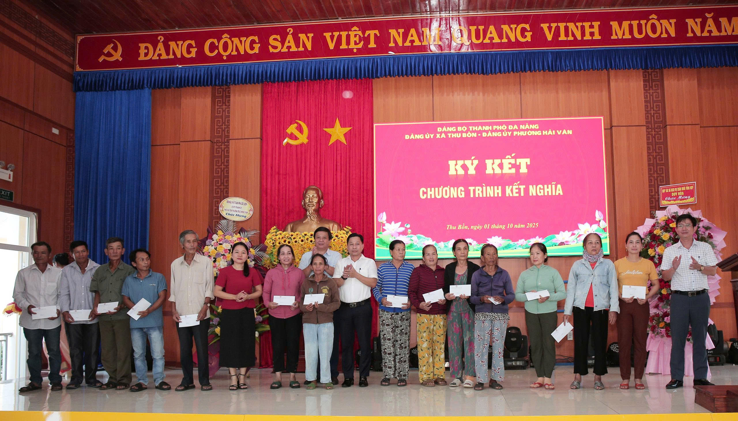 Tại buổi ký kết, phường Hải Vân trao tặng thiết bị phòng máy vi tính cho Trường Mẫu giáo Duy Châu và Trường THCS Lê Quang Sung trị giá 100 triệu đồng và tặng 30 suất quà, mỗi suất trị giá 1.000.000đ cho các hộ gia đình hoàn cảnh khó khăn trên địa bàn xã Thu Bồn.