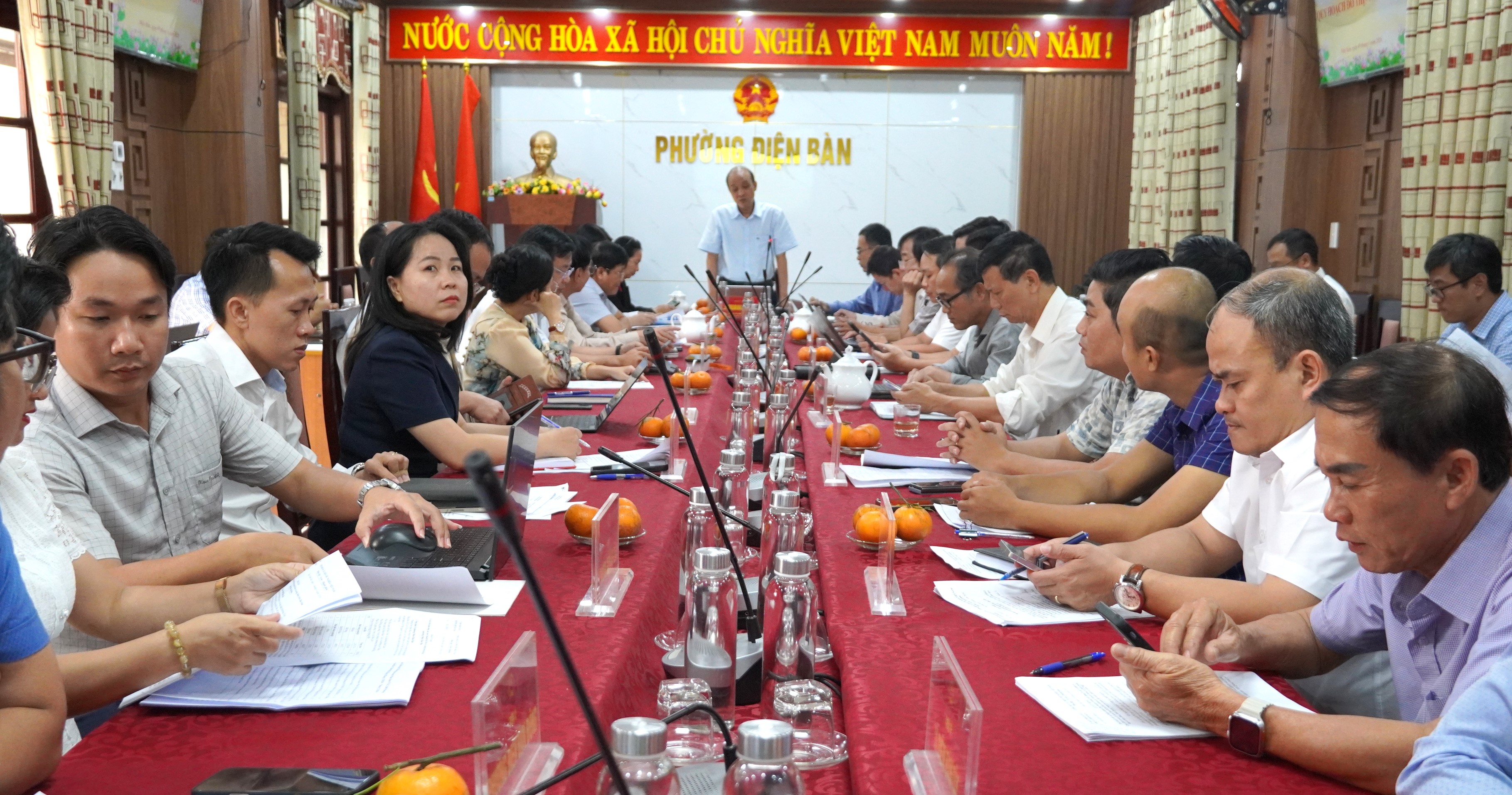 Sáng 09-4, Phó Chủ tịch UBND thành phố Lê Quang Nam chủ trì buổi làm việc với UBND các phường: An Thắng, Điện Bàn, Điện Bàn Đông, Điện Bàn Bắc và xã Điện Bàn Tây, Gò Nổi về triển khai quy hoạch đô thị - nông thôn.