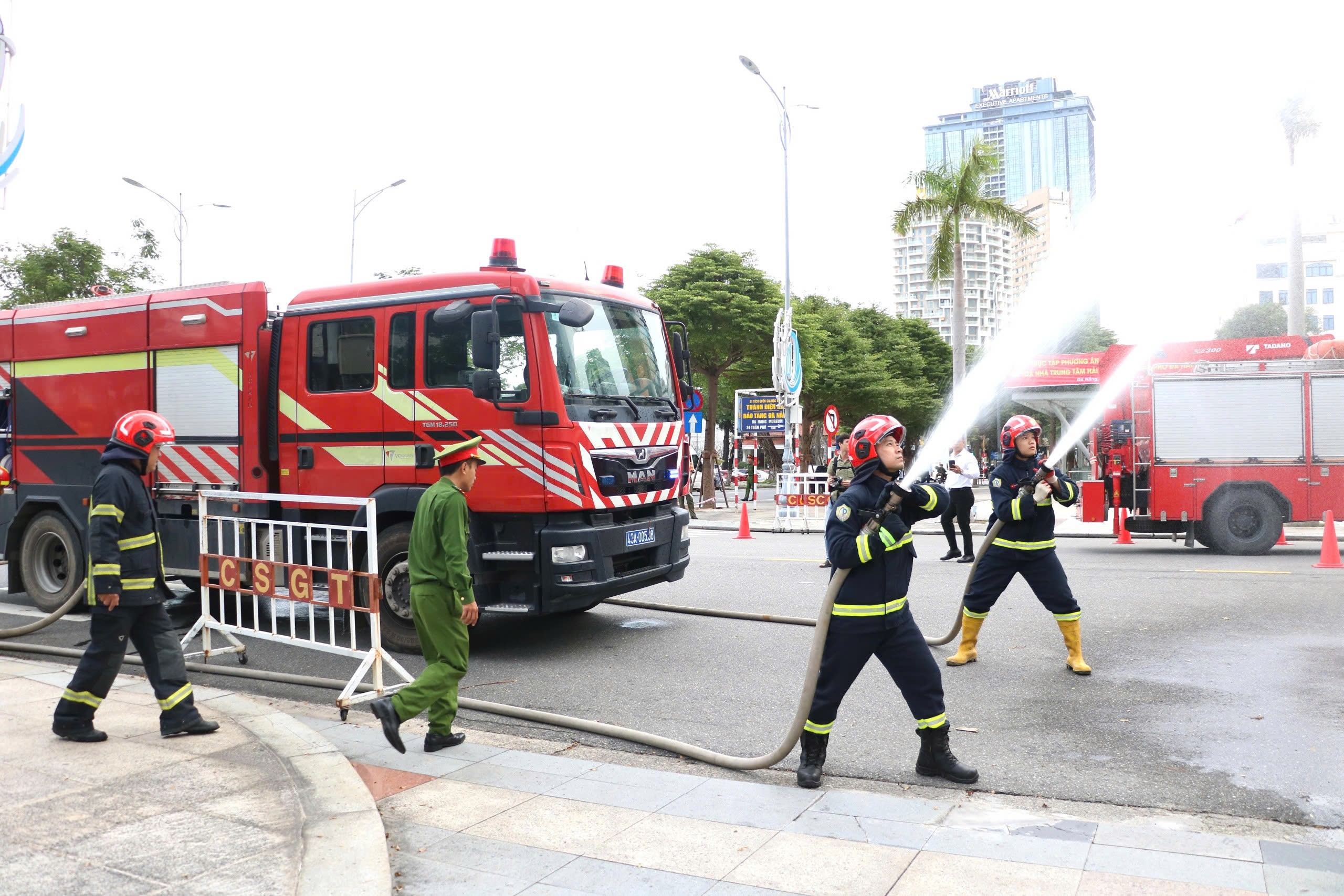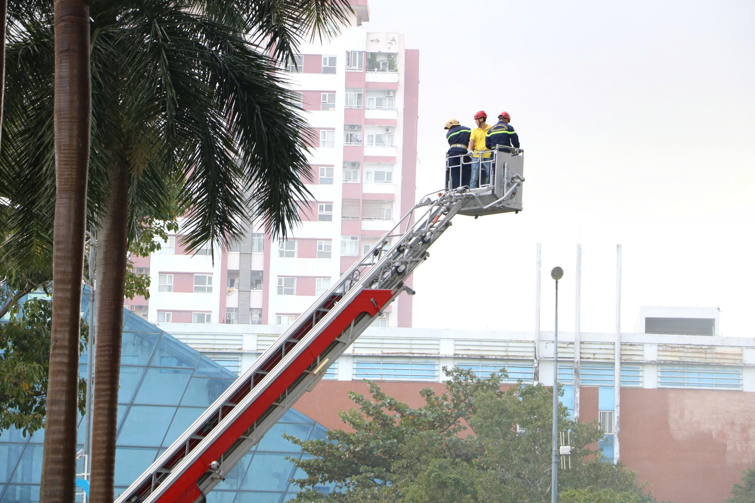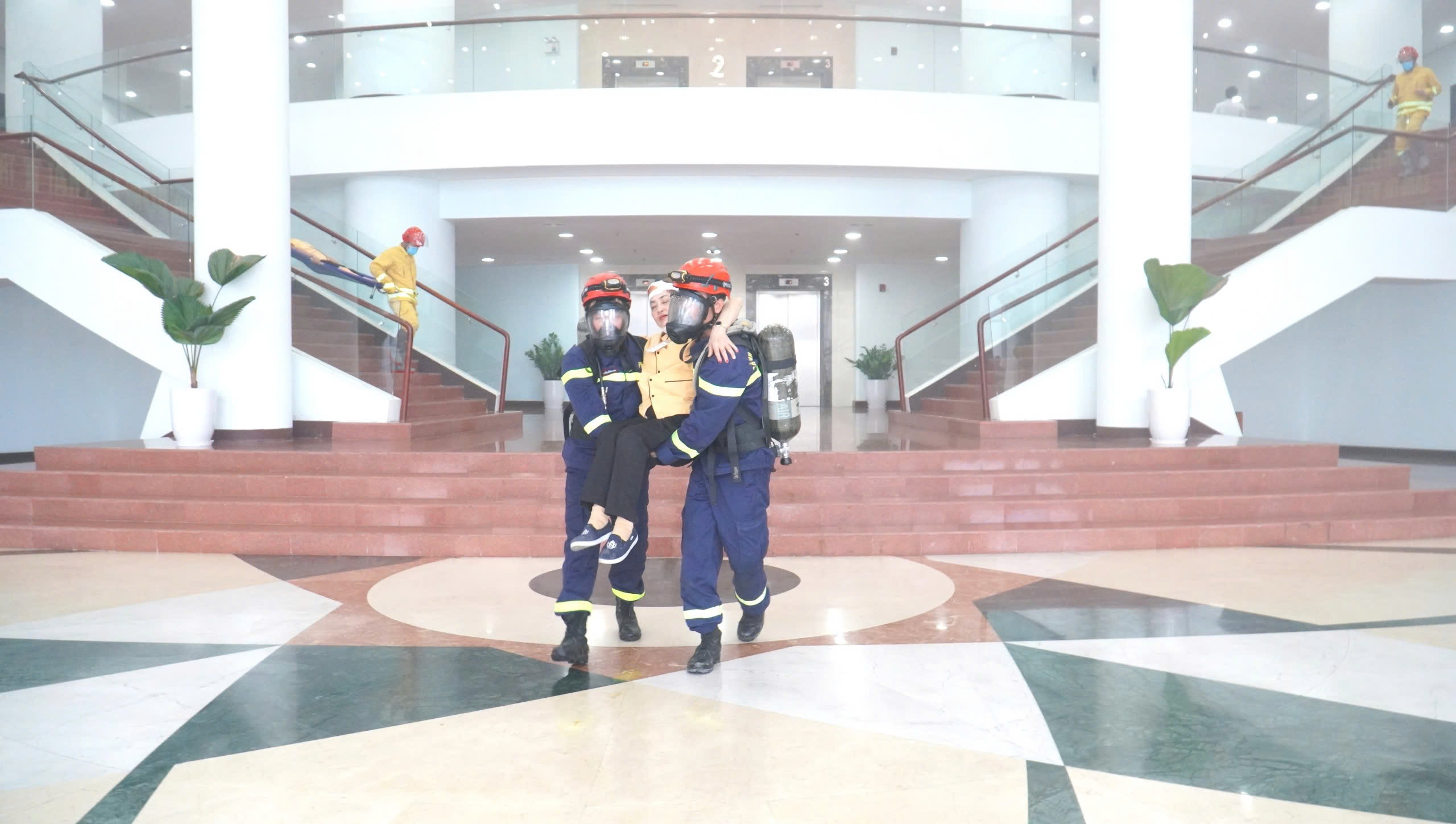 Sau khoảng 10 phút, đám cháy giả định được dập tắt, toàn bộ người bị nạn được đưa đến nơi an toàn và chuyển giao cho lực lượng y tế tiếp nhận sơ cứu hoặc đưa đi cấp cứu.