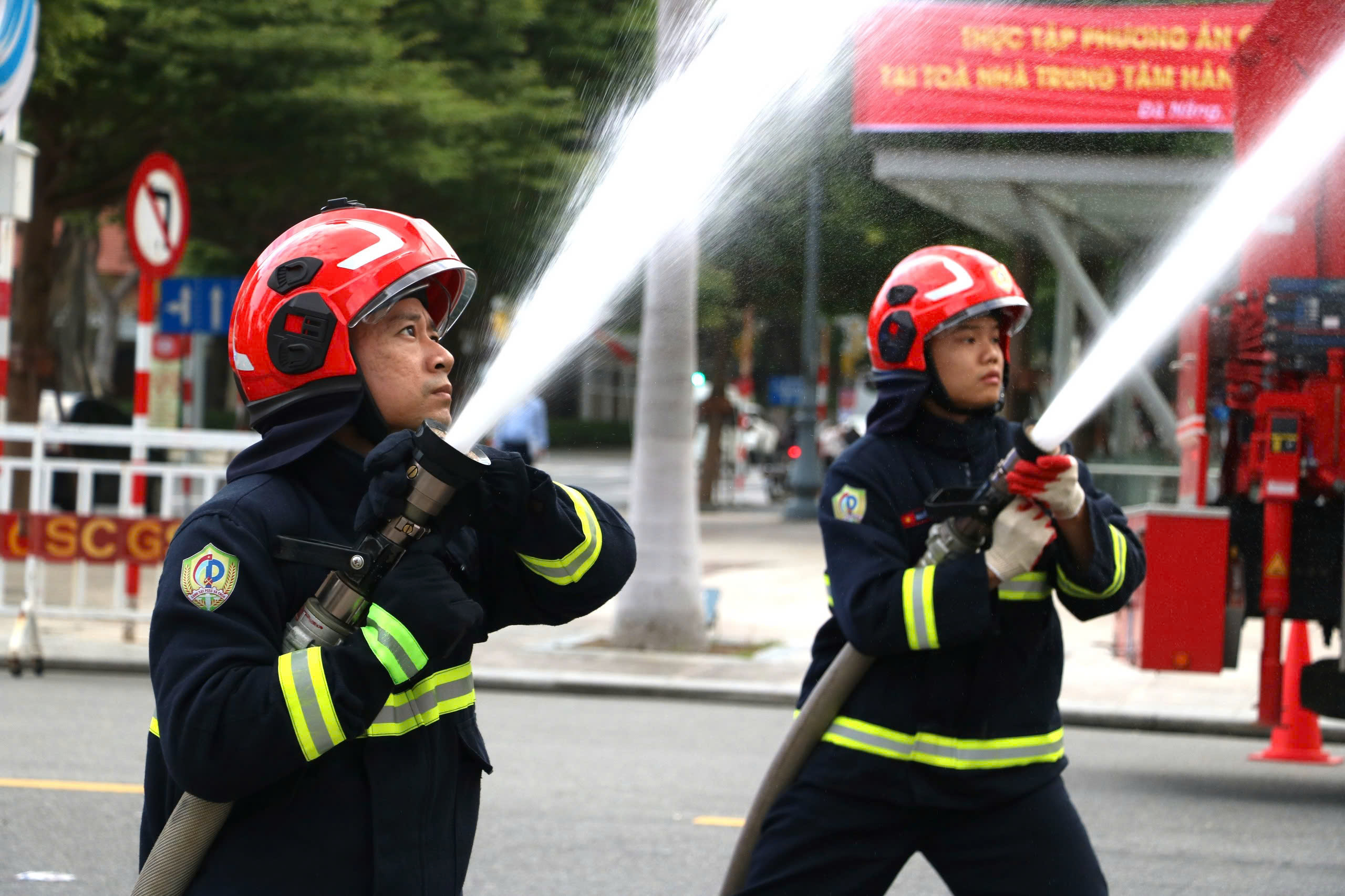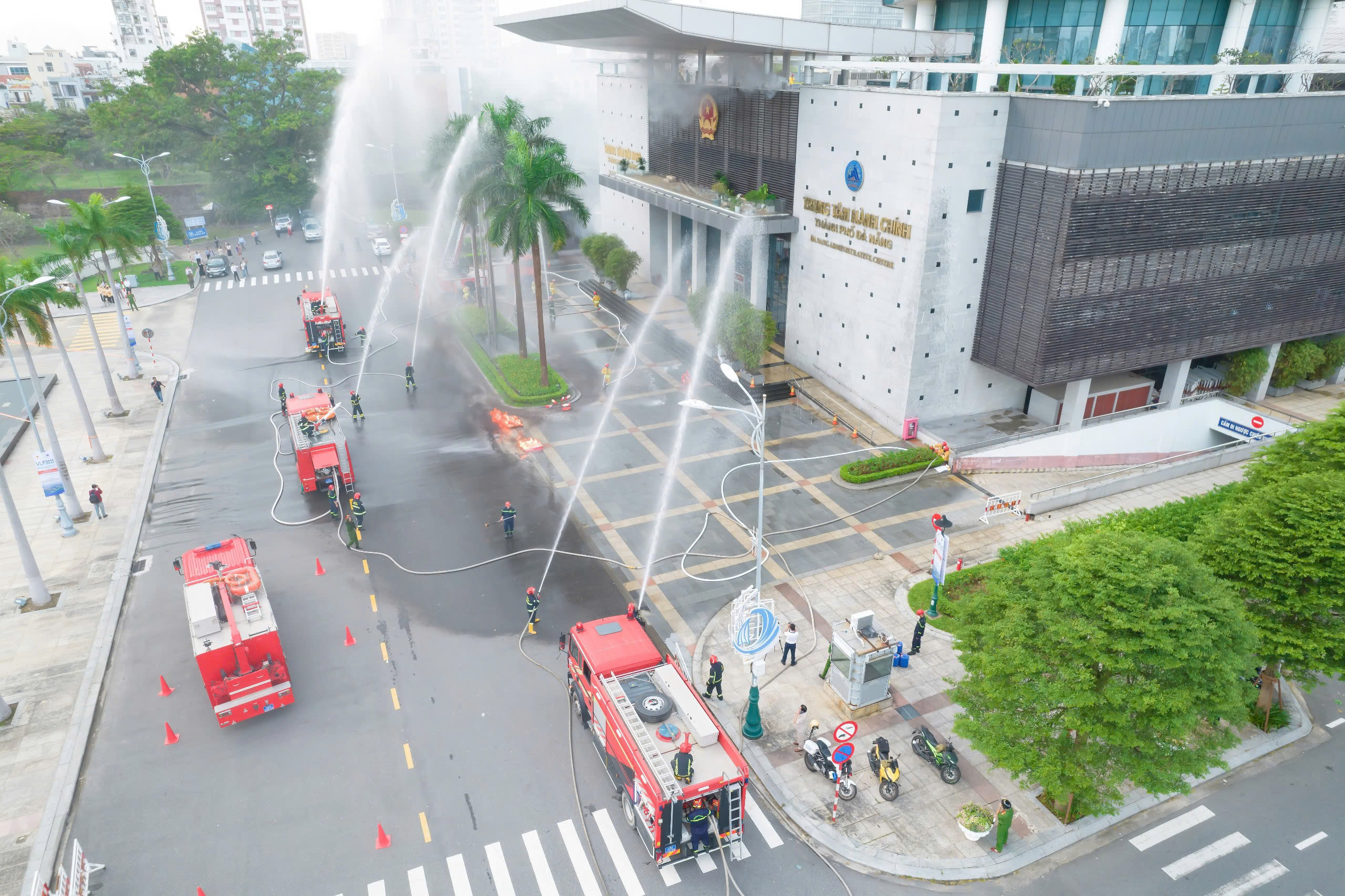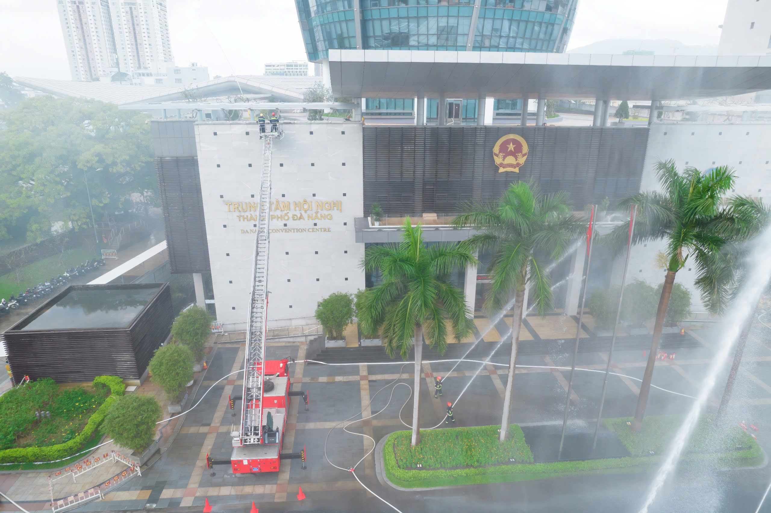 Chiều 05-12, Văn phòng UBND thành phố tổ chức diễn tập phòng cháy chữa cháy và cứu nạn, cứu hộ (PCCC&CNCH) tại tòa nhà Trung tâm hành chính thành phố (phường Hải Châu).