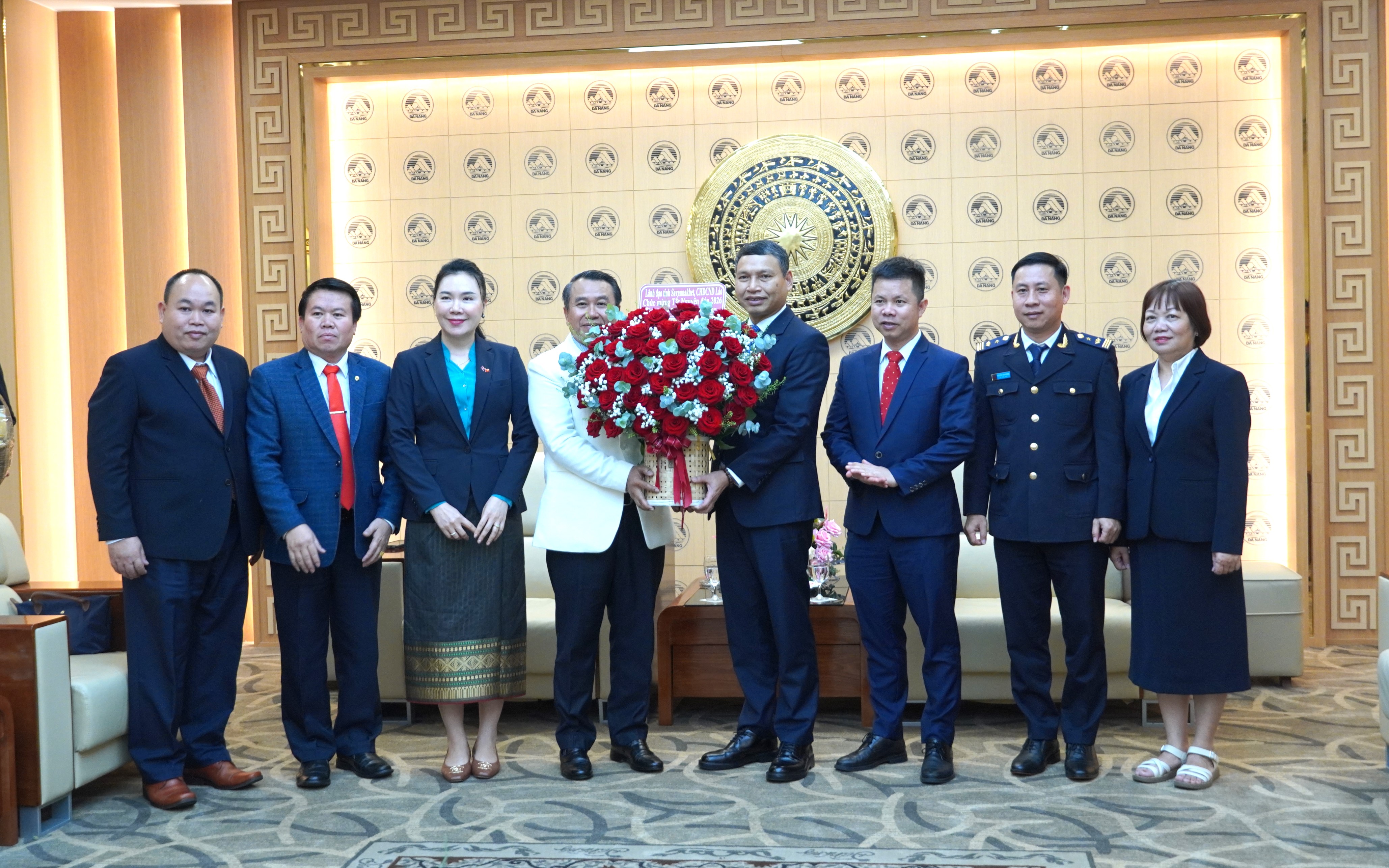 Phó Chủ tịch Ủy ban chính quyền tỉnh Savannakhet Thongsai Sayavongkhamdi bày tỏ hoan nghênh, chúc mừng thành công Đại hội đại biểu toàn quốc lần thứ XIV của Đảng; đồng thời chúc mừng kỷ niệm 96 năm Ngày thành lập Đảng Cộng sản Việt Nam và chúc Tết cán bộ và Nhân dân thành phố Đà Nẵng nhân dịp Tết cổ truyền Bính Ngọ 2026. Đoàn cũng thông tin khái quát về kết quả Đại hội XII Đảng Nhân dân Cách mạng Lào vừa qua.