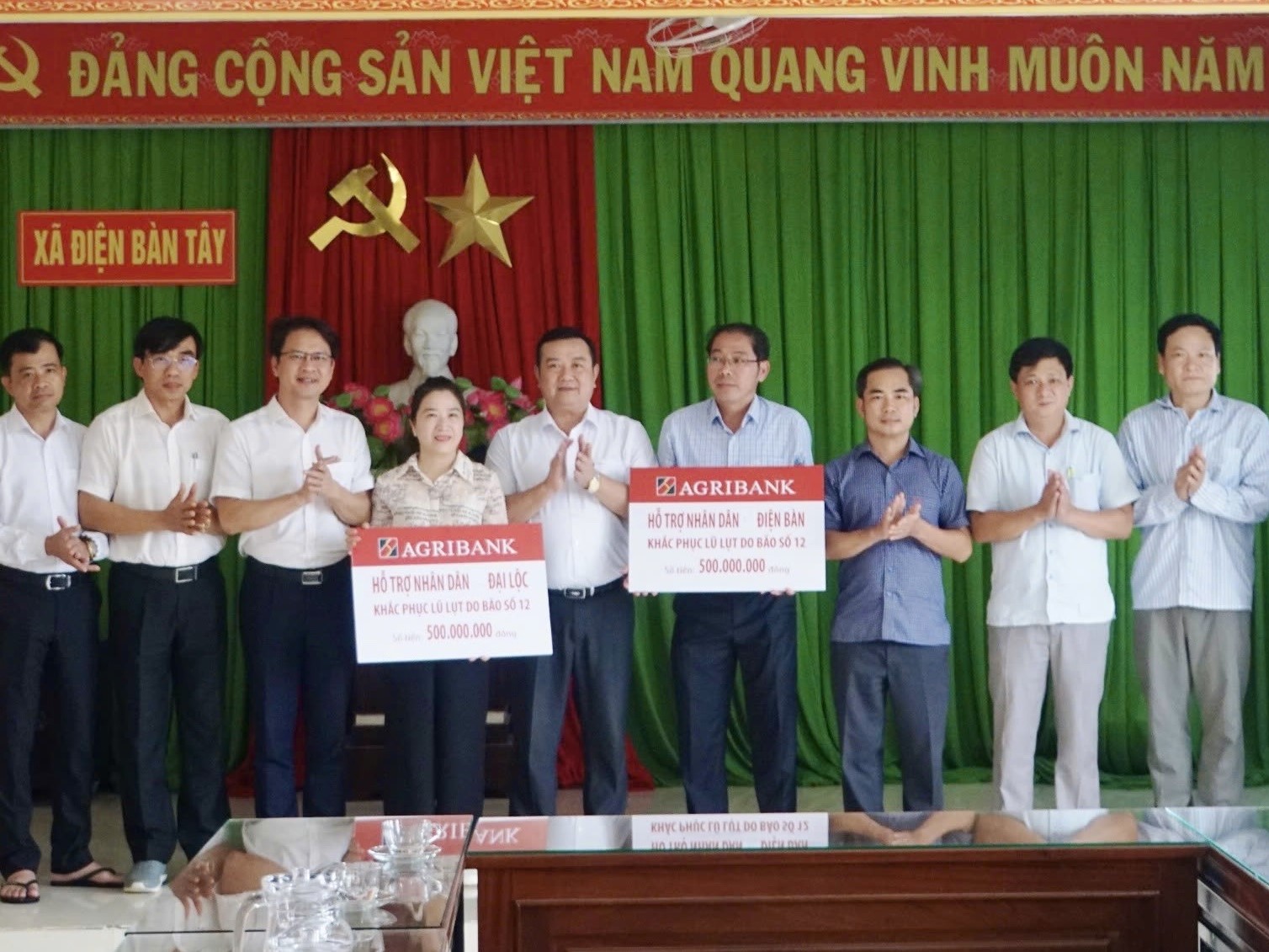 Chiều 03-11, Văn phòng đại diện Agribank khu vực miền Trung do ông Nguyễn Tiến Trường làm trưởng đoàn đã đến thăm hỏi chính quyền và người dân bị thiệt hại do bão lụt tại khu vực Đại Lộc và Điện Bàn.