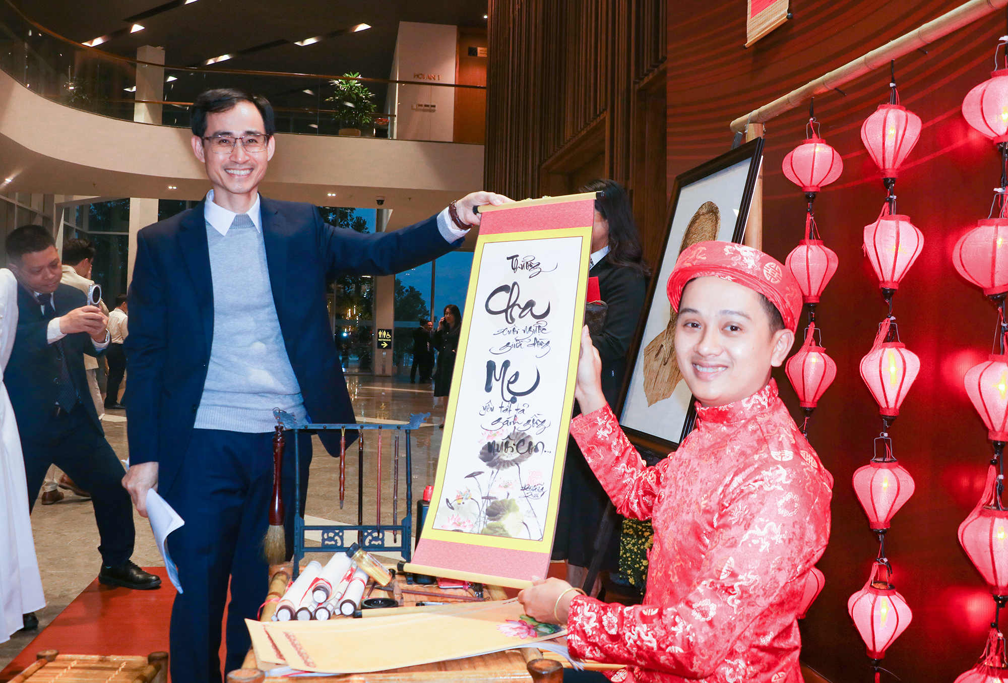 Bên cạnh đó, khu vực thư pháp thu hút sự quan tâm của nhiều đại biểu với những nét chữ mang ý nghĩa chúc mừng năm mới, thể hiện các giá trị văn hóa truyền thống được gìn giữ và lan tỏa.