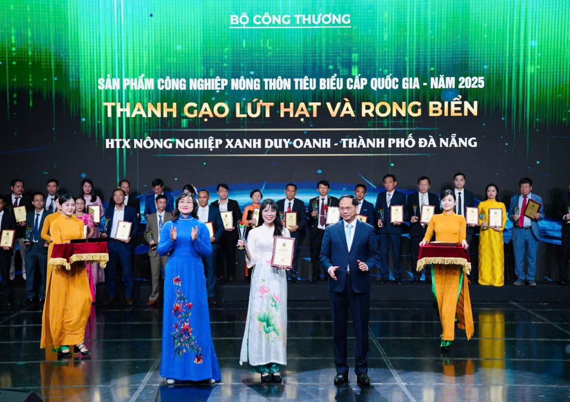 Tại Lễ tôn vinh, trao giấy chứng nhận sản phẩm công nghiệp nông thôn tiêu biểu cấp quốc gia năm 2025 do Bộ Công Thương tổ chức tối 3-10, Đà Nẵng có 02 sản phẩm được tôn vinh: Cà phê Mayaca M4 của Công ty TNHH MTV Cà phê Mayaca (xã Hòa Tiến) và Thanh gạo lứt hạt và rong biển của Hợp tác xã Nông nghiệp xanh Duy Oanh (xã Duy Xuyên). Đây không chỉ là niềm tự hào mà còn là điểm tựa quan trọng để doanh nghiệp tiếp tục lan tỏa thương hiệu trên thị trường.