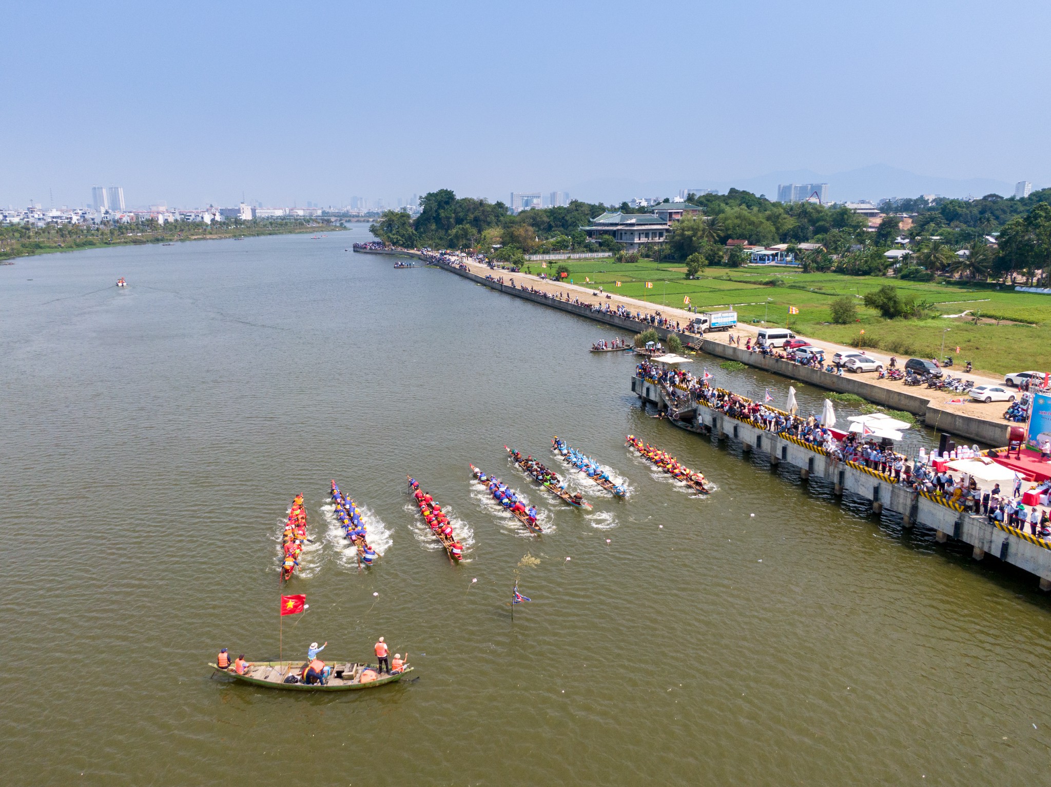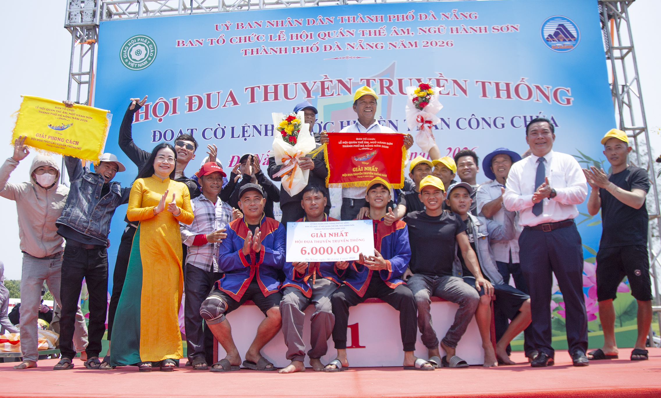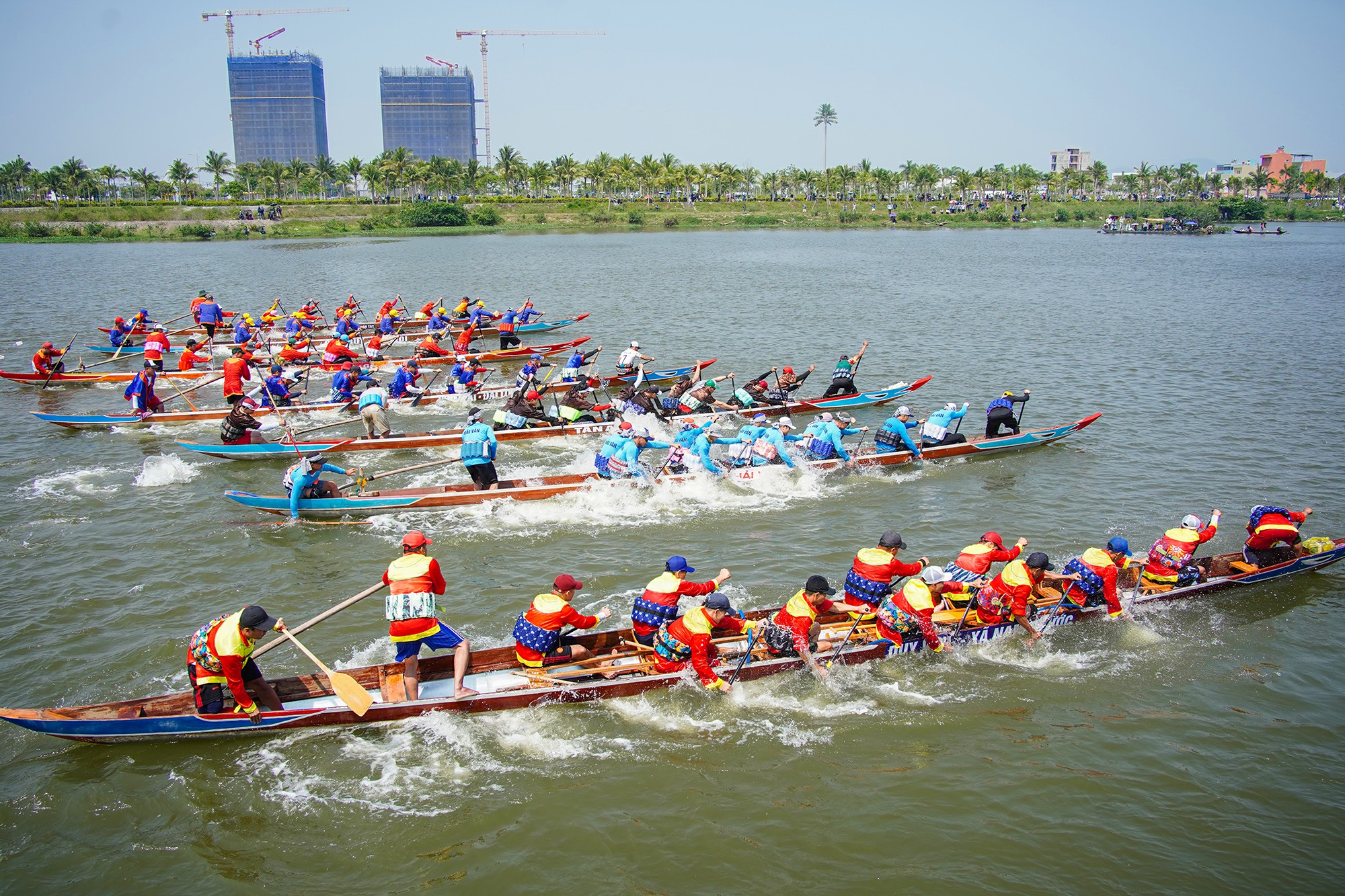 Sáng 06-4, tại khu vực sông Cổ Cò (phường Ngũ Hành Sơn), giải đua thuyền truyền thống đoạt cờ lệnh rước Huyền Trân Công chúa trong khuôn khổ Lễ hội Quán Thế Âm Ngũ Hành Sơn 2026 diễn ra sôi nổi, thu hút đông đảo người dân và du khách đón xem.