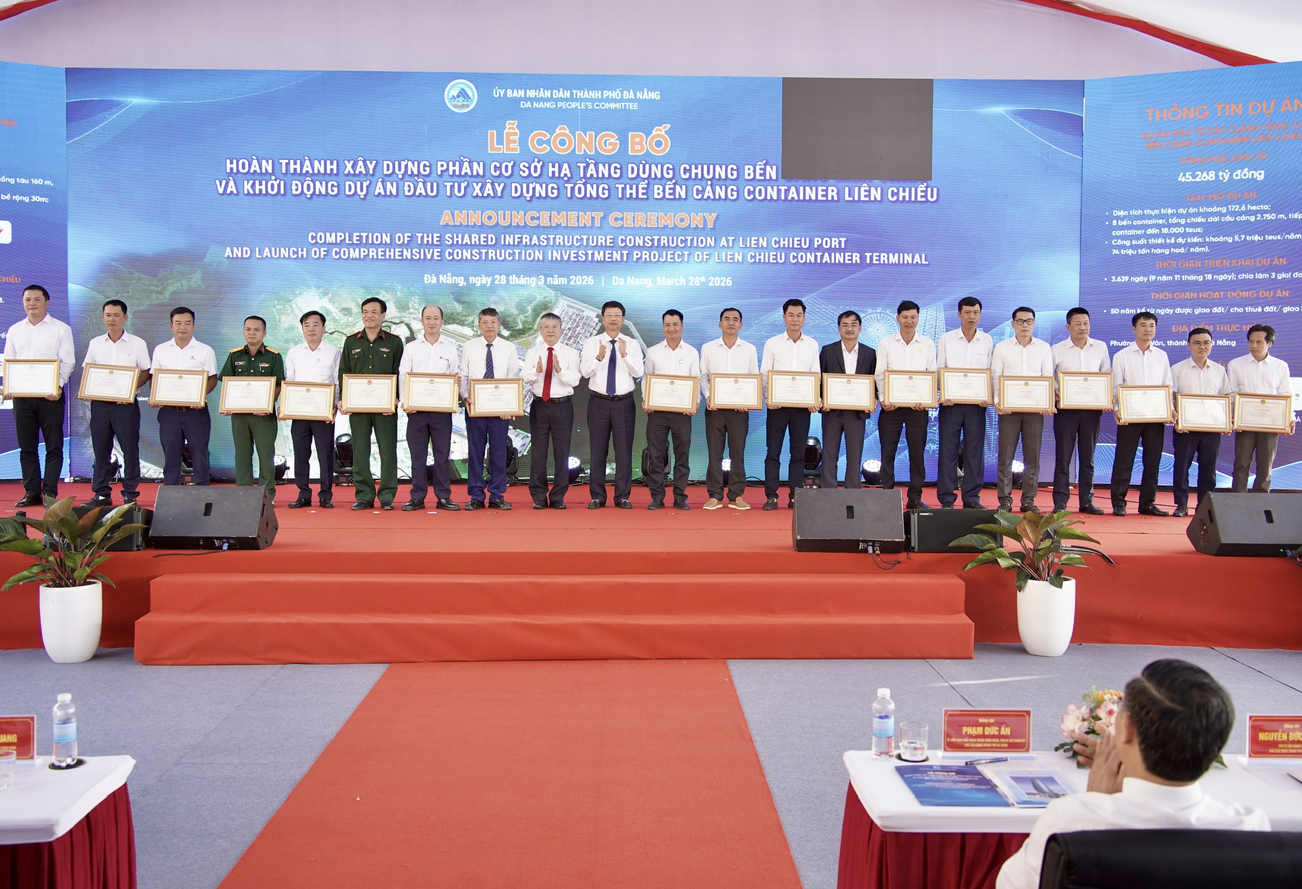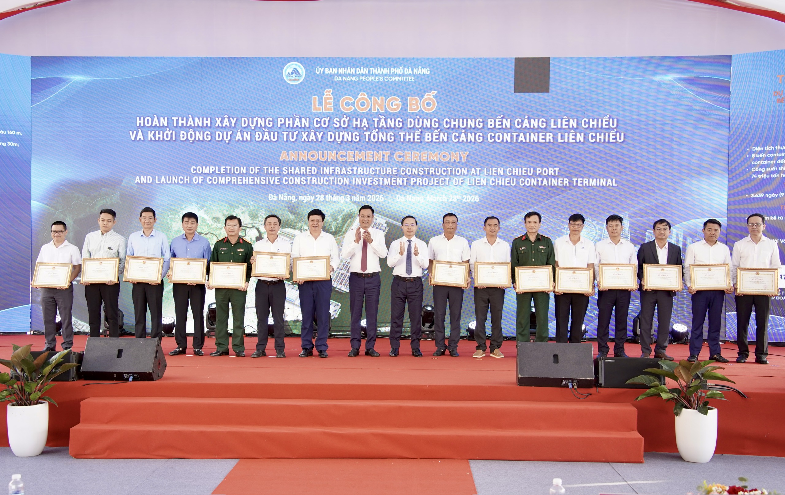 Dịp này, UBND thành phố tặng Bằng khen cho 2 tập thể, 1 cá nhân vì có thành tích xuất sắc trong thi công dự án Phần cơ sở hạ tầng dùng chung Cảng Liên Chiểu; 8 tập thể và 19 cá nhân trong thi công đường ven biển nối cảng Liên Chiểu.