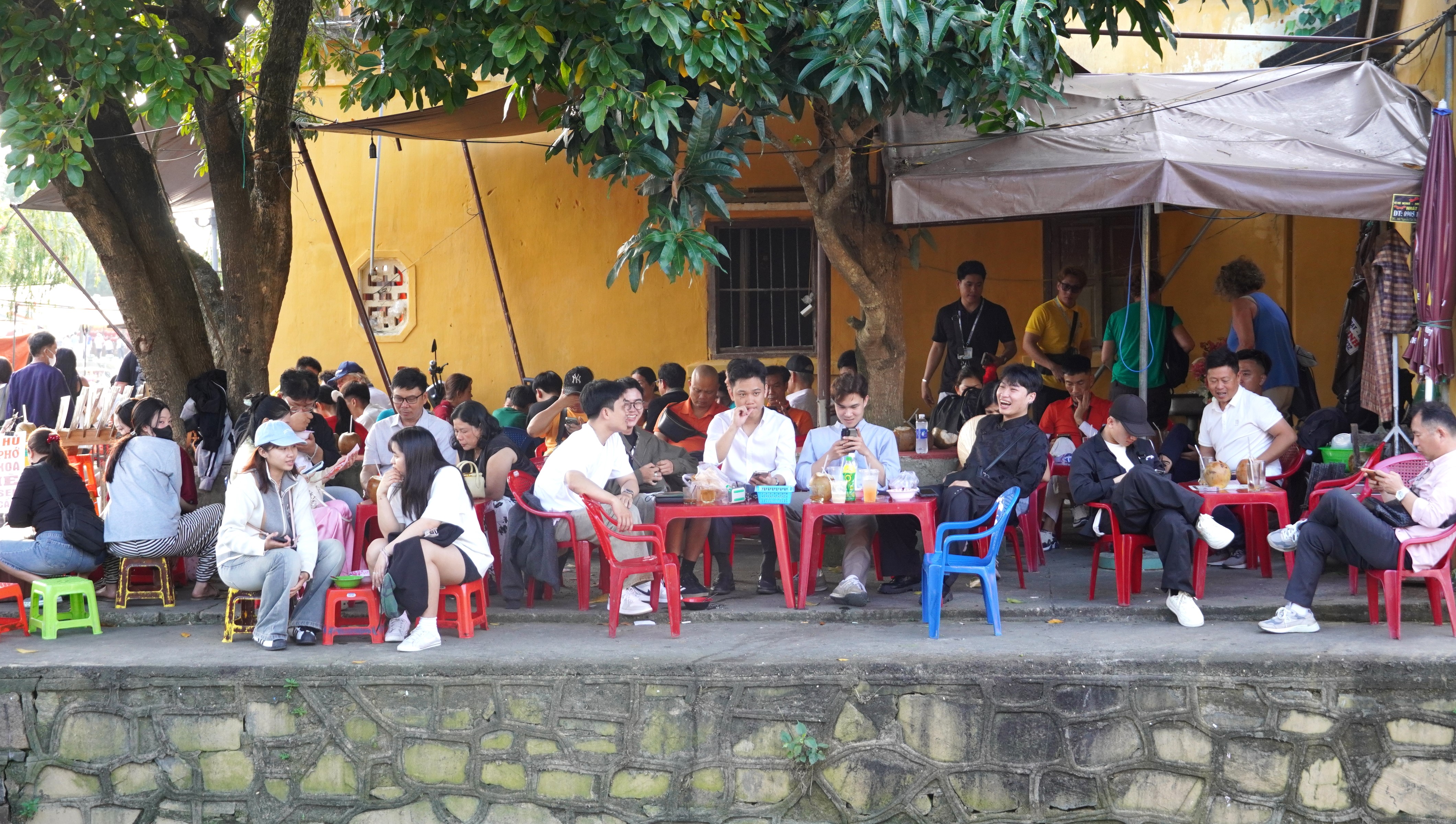 Theo ghi nhận, du khách tập trung tại các điểm tham quan nổi tiếng như Chùa Cầu, Nhà cổ Tấn Ký, Hội quán Phúc Kiến… để tham quan và chụp ảnh. Nhiều gia đình lựa chọn mặc áo dài, lưu lại khoảnh khắc đầu năm giữa không gian di sản.