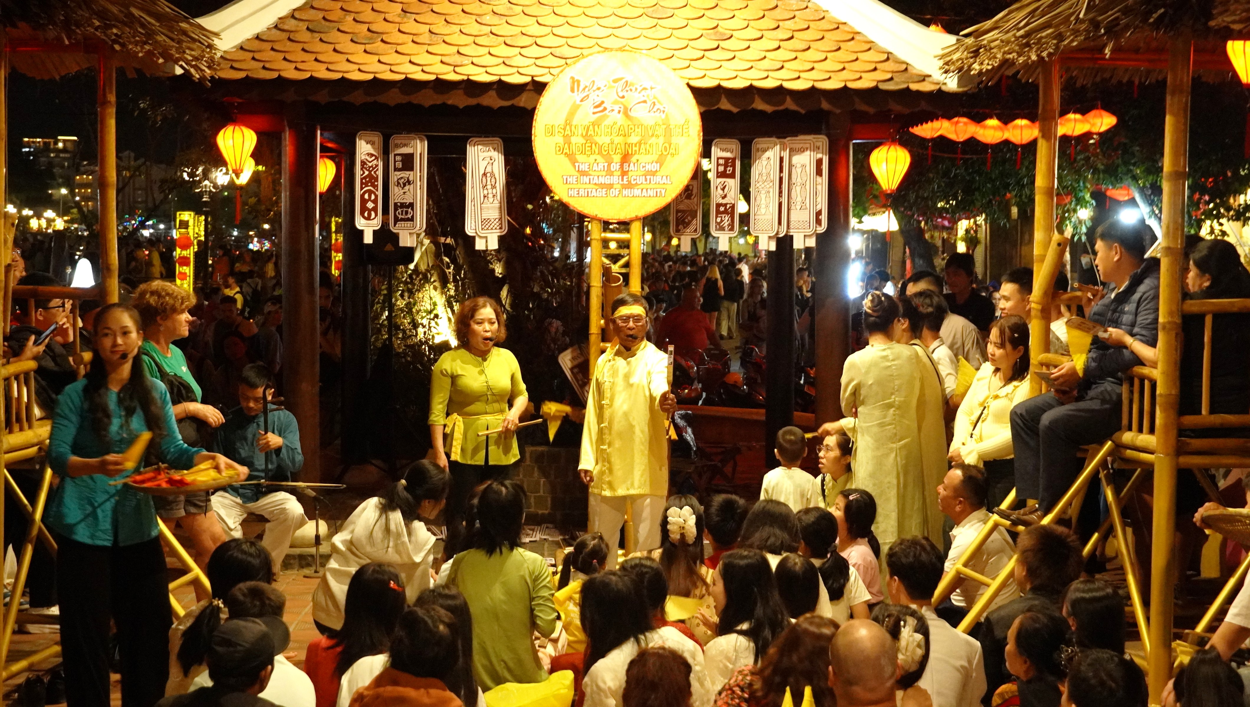 Bên cạnh hoạt động tham quan, các chương trình văn hóa nghệ thuật cũng thu hút du khách. Hoạt động hô hát Bài Chòi diễn ra vào chiều tối, tạo không khí rộn ràng, góp phần làm phong phú trải nghiệm của du khách trong ngày đầu năm mới.
