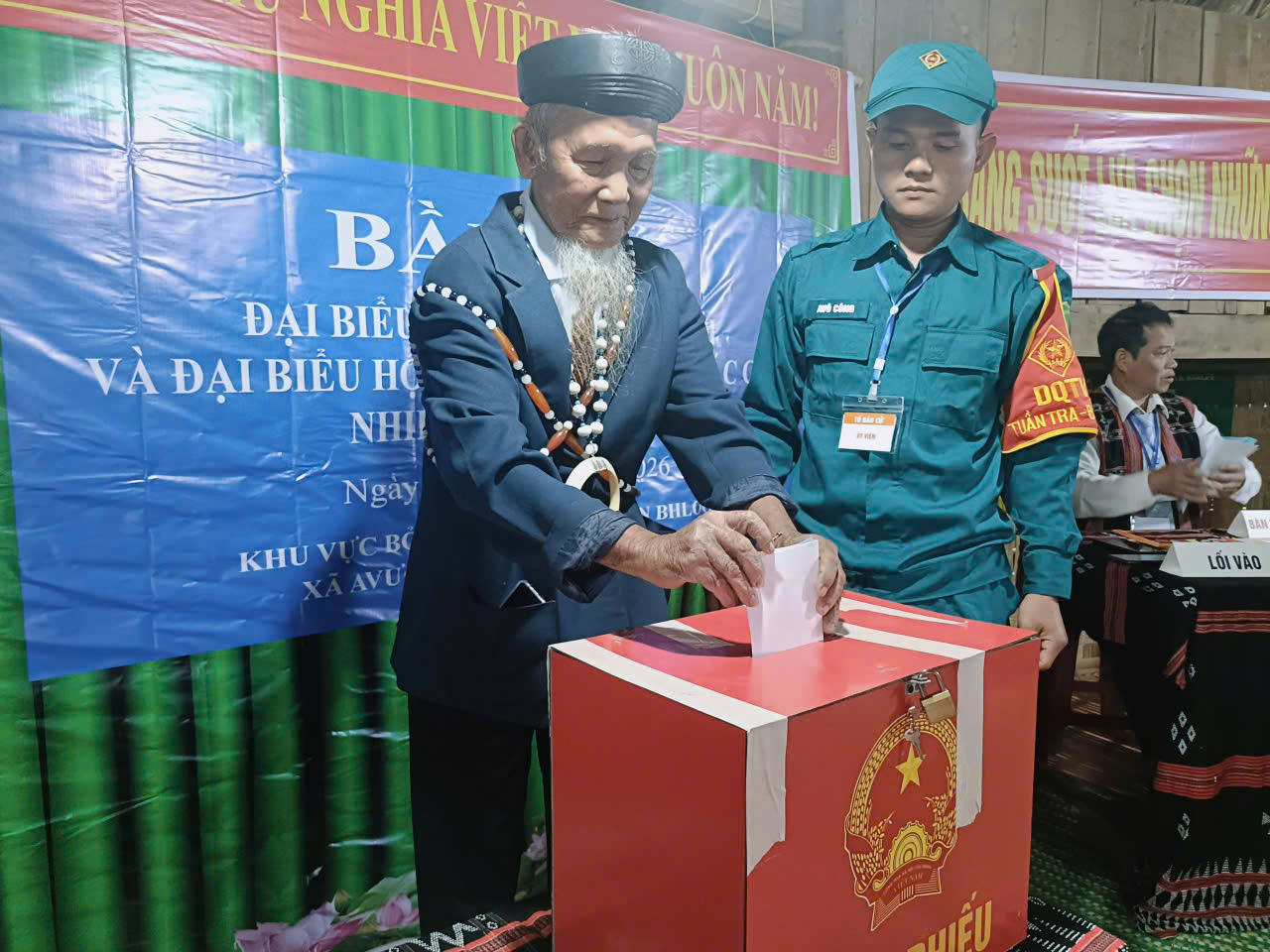 Tại các khu vực bỏ phiếu, công tác tổ chức được chuẩn bị chu đáo, đảm bảo đúng quy định, tạo không khí trang trọng và phấn khởi trong ngày hội lớn của toàn dân. Đặc biệt, hình ảnh các chiến sĩ bộ đội biên phòng ân cần hỗ trợ, dìu các cụ già, người cao tuổi đến nơi phát phiếu và khu vực bỏ phiếu đã để lại nhiều xúc động. Dù tuổi cao, đi lại khó khăn nhưng các cụ vẫn đến tham gia bầu cử, thể hiện tinh thần trách nhiệm và niềm tin của nhân dân vùng biên đối với ngày hội lớn của đất nước.