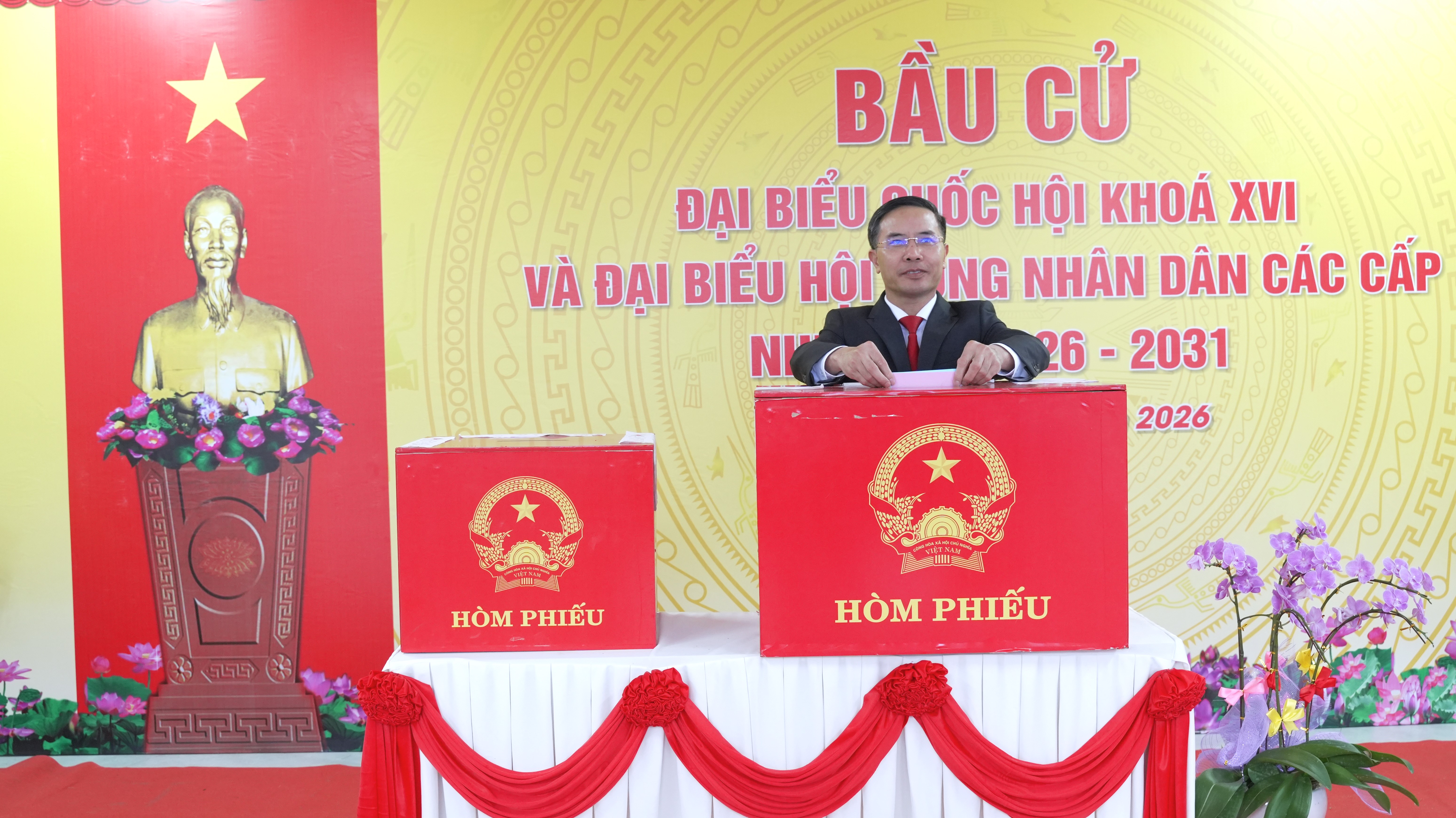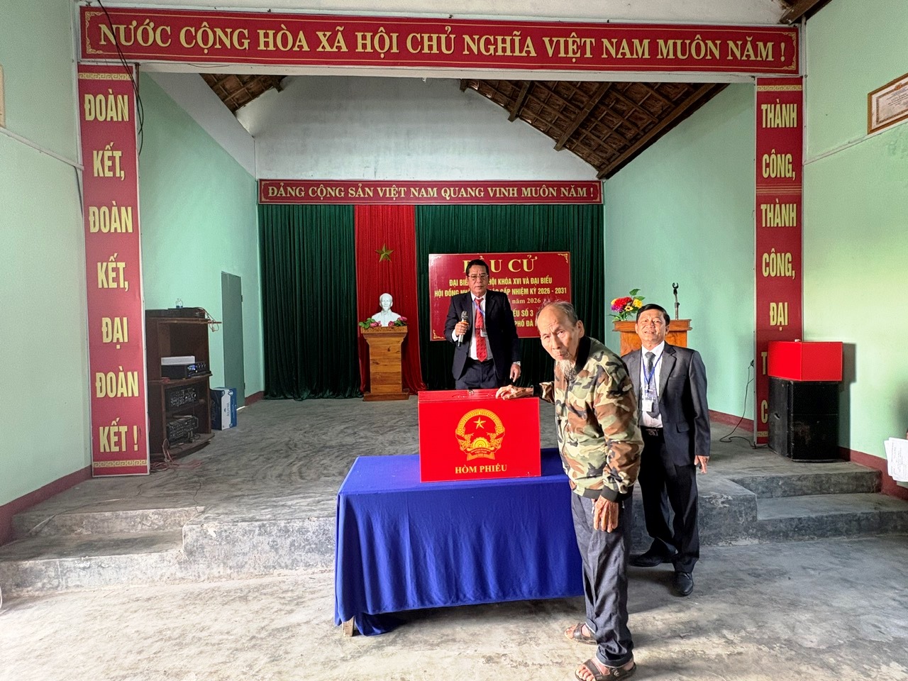 Công tác kiểm tra, niêm phong hòm phiếu được tiến hành nghiêm túc theo quy định, dưới sự chứng kiến của đông đảo cử tri. Cuộc bầu cử chính thức bắt đầu trong không khí trang nghiêm, dân chủ.