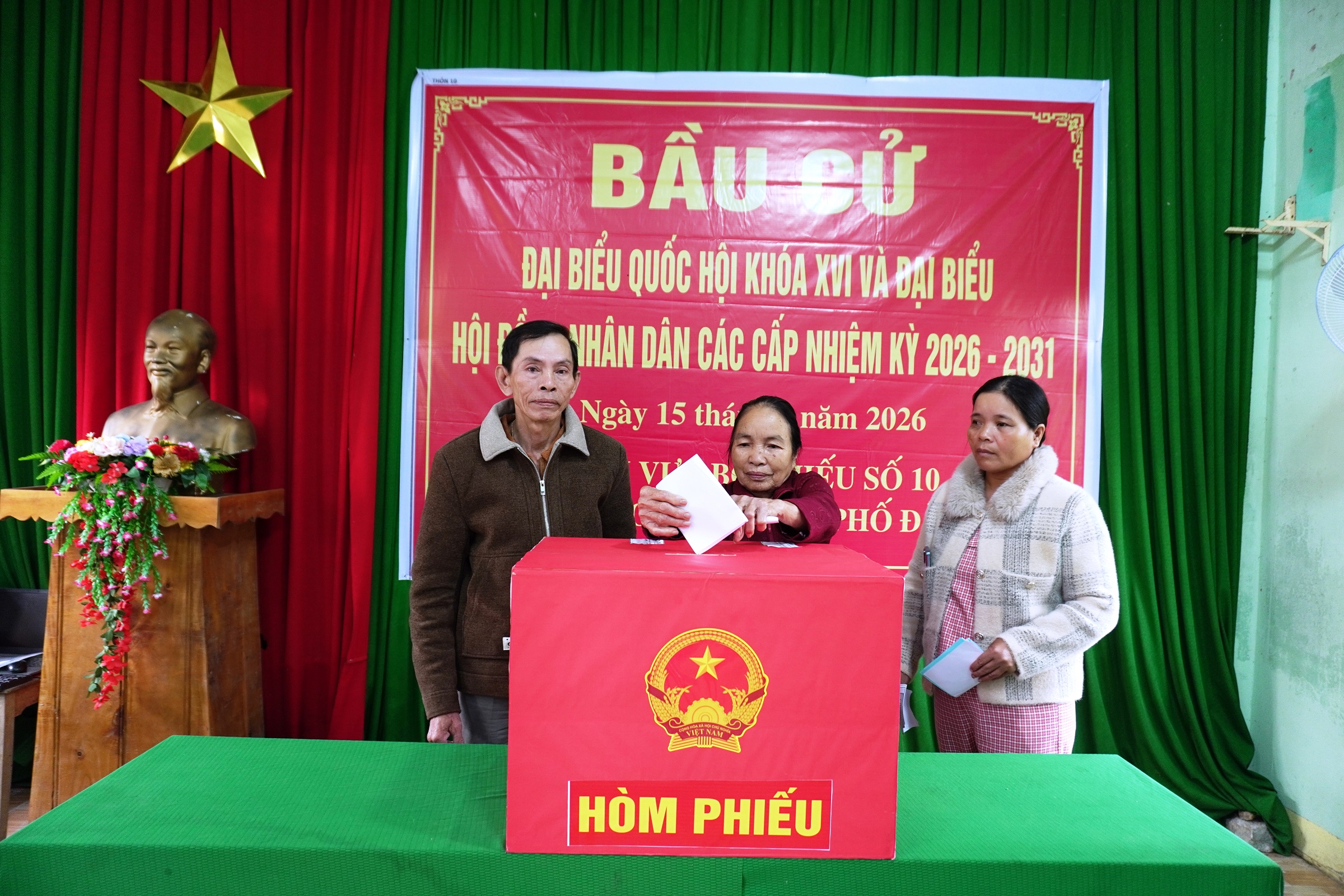 Các điểm bỏ phiếu được trang trí trang trọng với cờ Tổ quốc, băng rôn, pa-nô tuyên truyền, tạo không khí trang nghiêm, phấn khởi. Công tác tổ chức được chuẩn bị chu đáo; việc kiểm tra danh sách cử tri, phát phiếu và hướng dẫn cử tri bỏ phiếu được thực hiện đúng quy định.