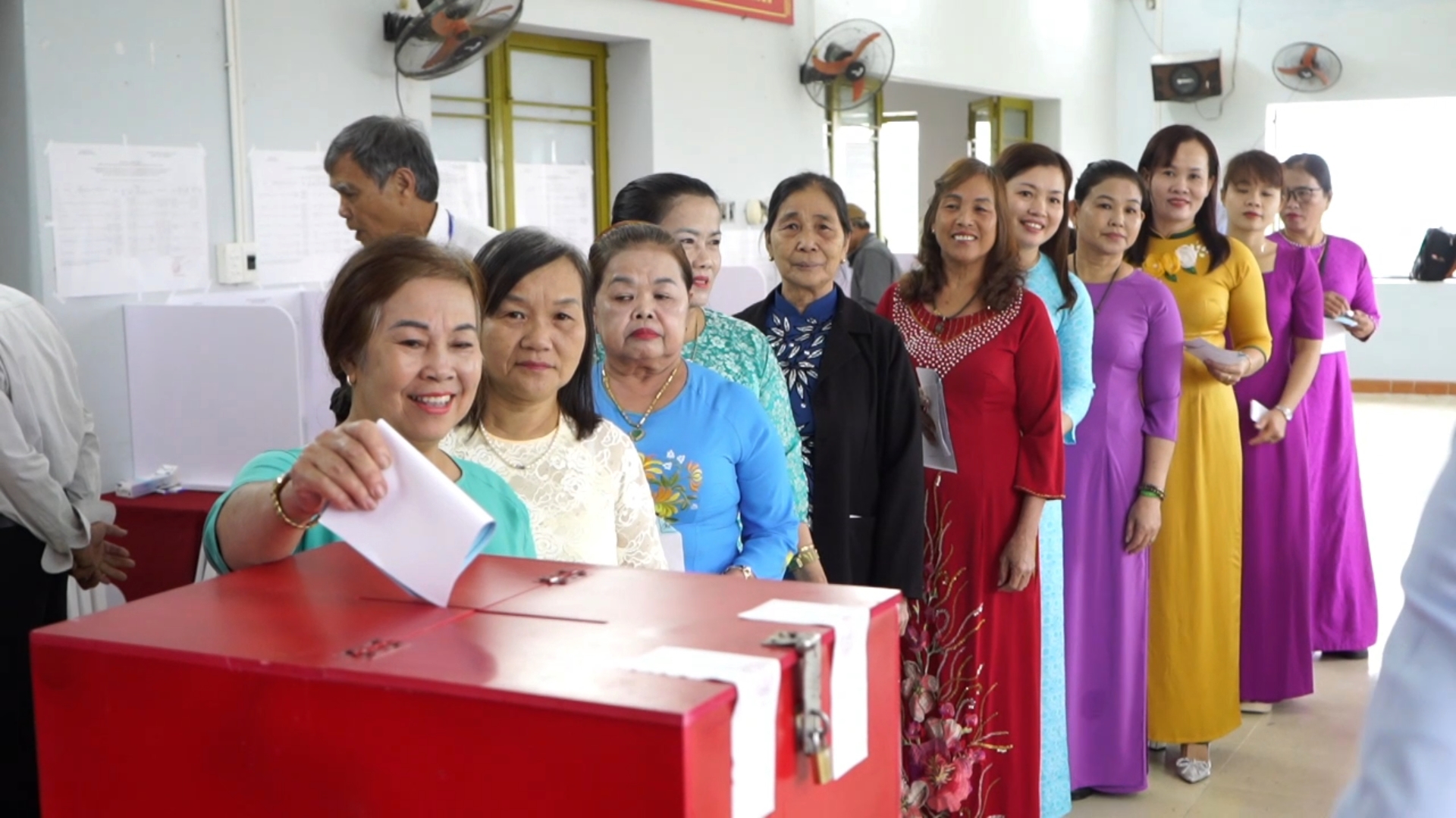 Cử tri thể hiện niềm vui và tự hào khi được trực tiếp cầm trên tay lá phiếu, thực hiện quyền công dân và trách nhiệm của mình lựa chọn những đại biểu tiêu biểu, đại diện cho ý chí và nguyện vọng của nhân dân.