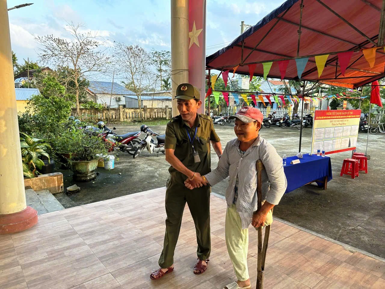 Các tổ bầu cử bố trí đoàn viên, thanh niên hỗ trợ người cao tuổi, người đi lại khó khăn; đồng thời hướng dẫn cụ thể từng bước thực hiện bỏ phiếu. Lực lượng công an, dân quân và các tổ bảo vệ được bố trí tại các điểm bỏ phiếu nhằm bảo đảm an ninh trật tự, tạo điều kiện thuận lợi để cử tri tham gia bầu cử.