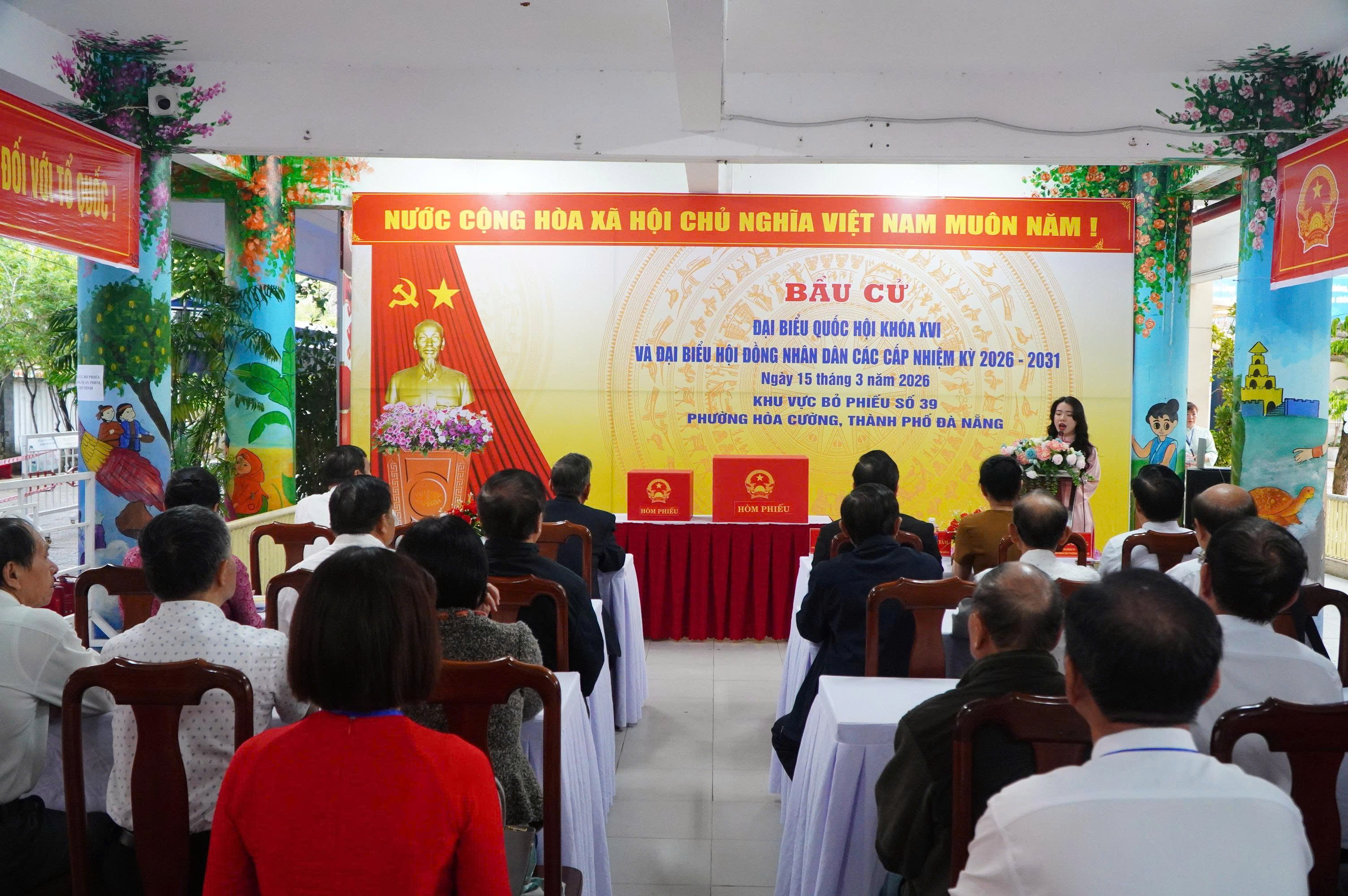 Tại lễ khai mạc, ông Trương Chí Linh, Tổ trưởng Tổ bầu cử số 15 đã thông qua thể lệ và nội quy phòng bỏ phiếu; đồng thời kêu gọi toàn thể cử tri nêu cao tinh thần trách nhiệm, phát huy đầy đủ quyền và nghĩa vụ công dân, sáng suốt lựa chọn và bầu ra những đại biểu có đức, có tài tham gia Quốc hội khóa XVI và HĐND các cấp nhiệm kỳ 2026 - 2031.