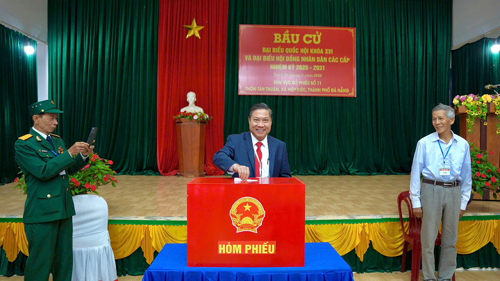 * Tại phường Ngũ Hành Sơn, sáng 15-3, cử tri thể hiện tinh thần trách nhiệm cao, thực hiện quyền và nghĩa vụ công dân, nô nức đi bầu cử đại biểu Quốc hội khóa XVI và đại biểu Hội đồng nhân dân các cấp nhiệm kỳ 2026 - 2031.