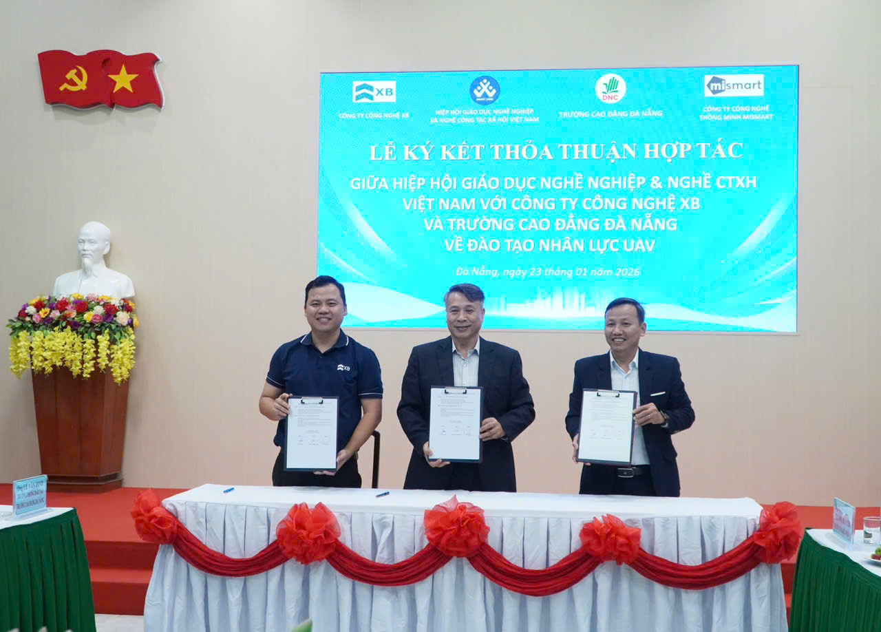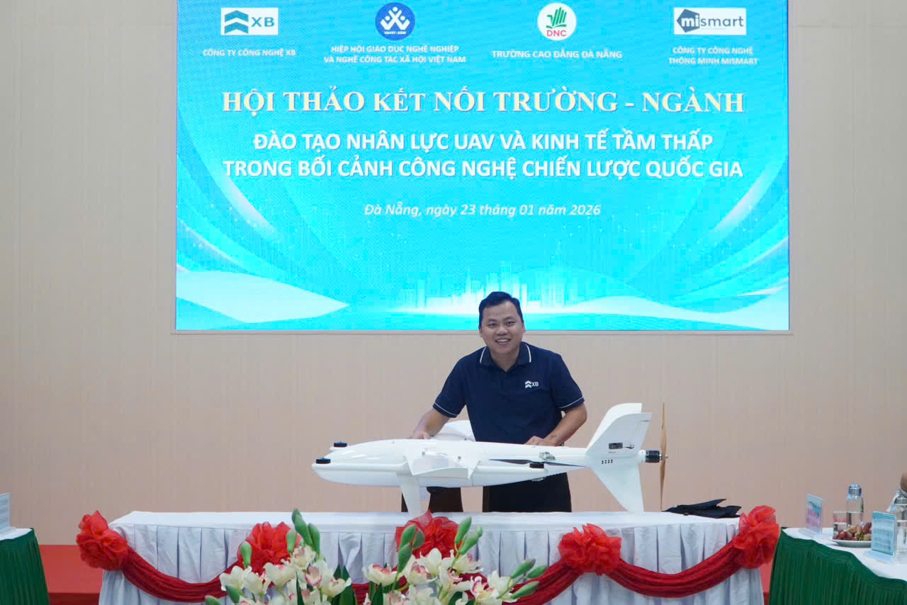 Chiều 23-01, tại Trường Cao đẳng Đà Nẵng, Hiệp hội Giáo dục nghề nghiệp và Nghề Công tác xã hội Việt Nam phối hợp Trường Cao đẳng Đà Nẵng, công ty công nghệ XB và công ty công nghệ Thông minh Mismart tổ chức Hội thảo "Kết nối Trường - Ngành trong đào tạo nhân lực UAV và kinh tế tầm thấp trong bối cảnh công nghệ chiến lược quốc gia".