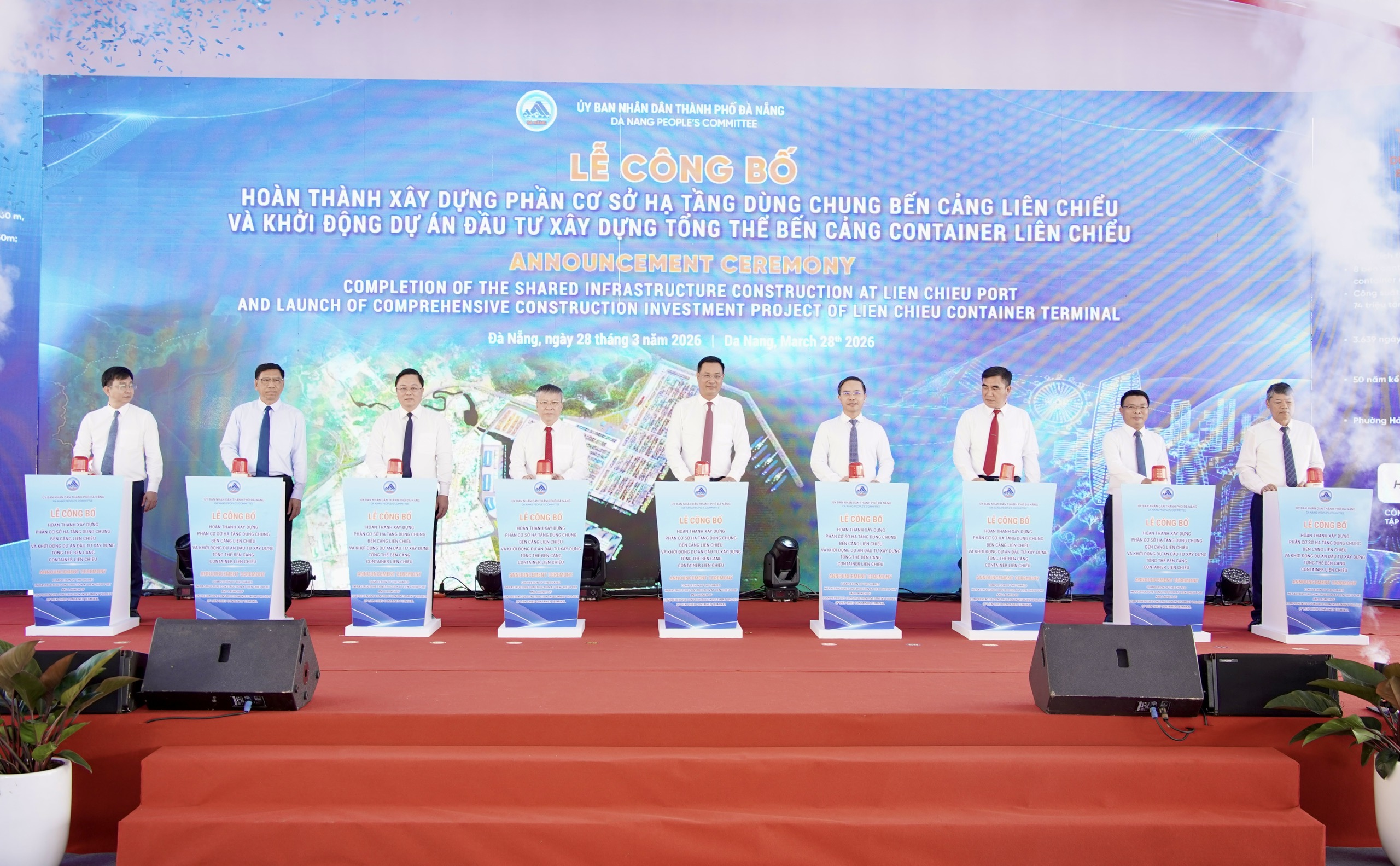 Các đại biểu bấm nút khởi động Dự án Đầu tư xây dựng tổng thể Bến cảng container Liên Chiểu