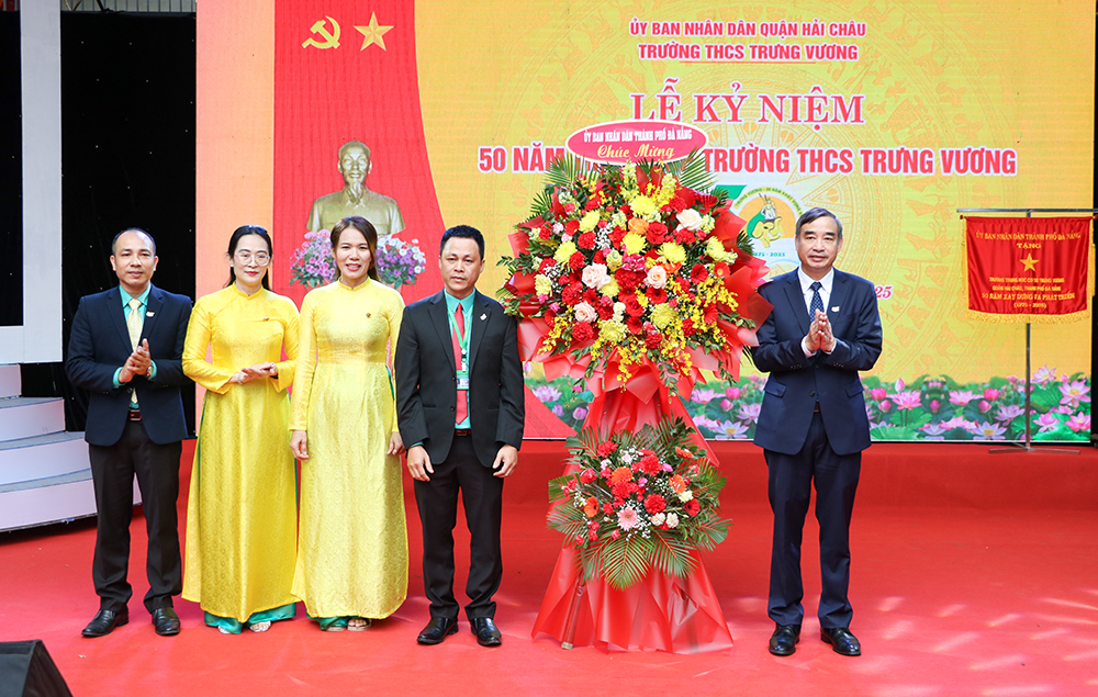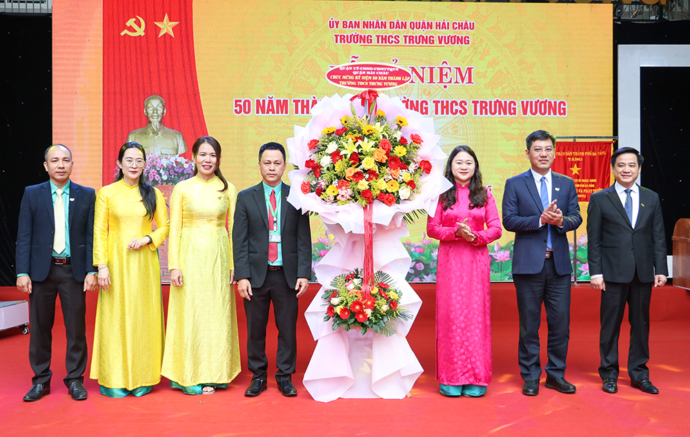 Lãnh đạo quận Hải Châu tặng hoa chúc mừng kỷ niệm 50 năm thành lập Trường THCS Trưng Vương