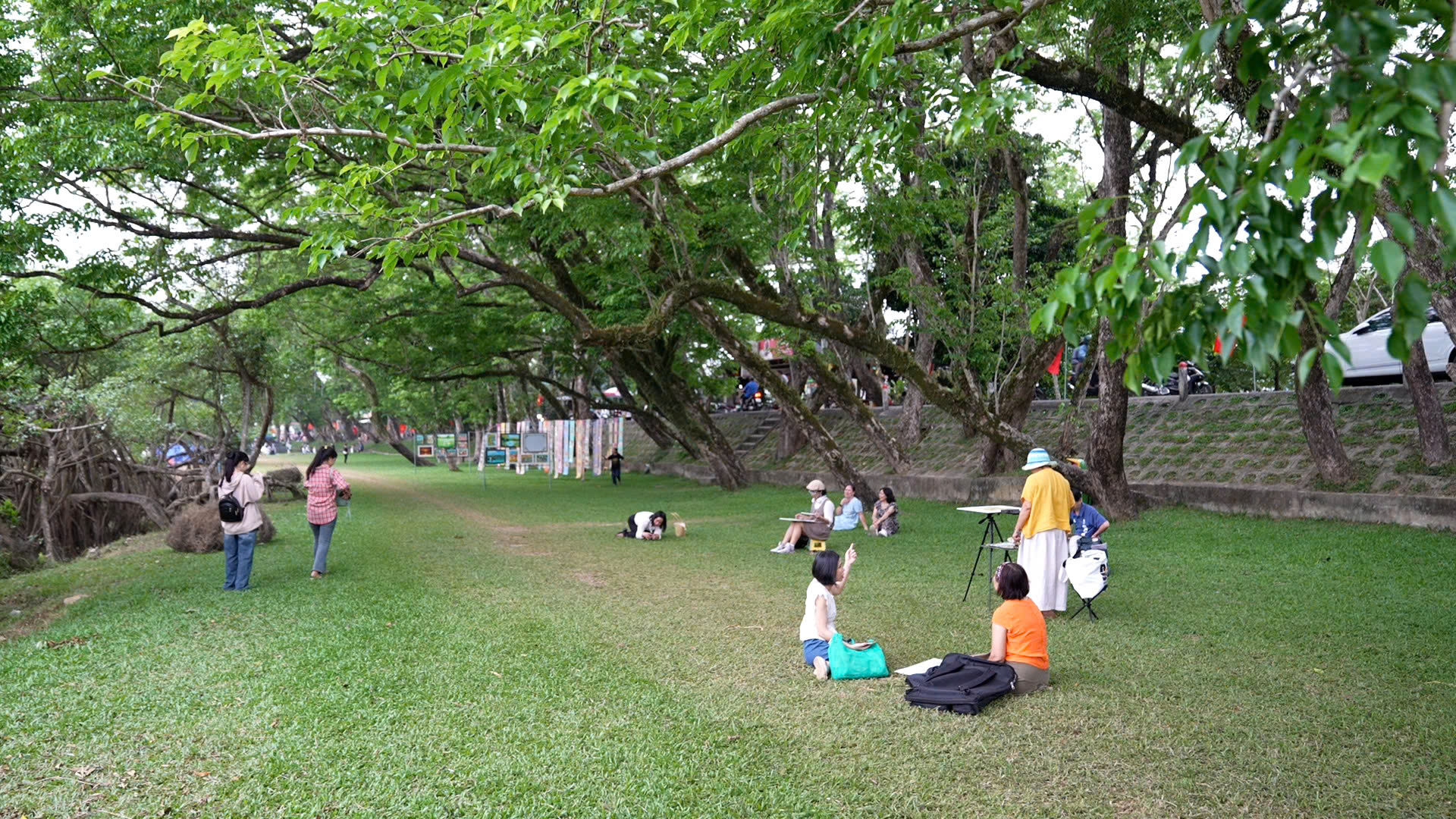 Đến thăm làng sinh thái Hương Trà, du khách không chỉ tham quan mà còn có cơ hội “sống chậm” giữa không gian làng quê ven sông Tam Kỳ hiền hòa. Những bước chân thong thả trên các tuyến đường làng rợp bóng cây sưa, những vòng xe đạp men theo bờ sông, hay khoảnh khắc chụp ảnh dưới tán sưa di sản trăm tuổi mang lại cảm giác an yên, thư thái – đặc biệt ấn tượng vào tháng 4 mùa hoa sưa nở rực vàng.