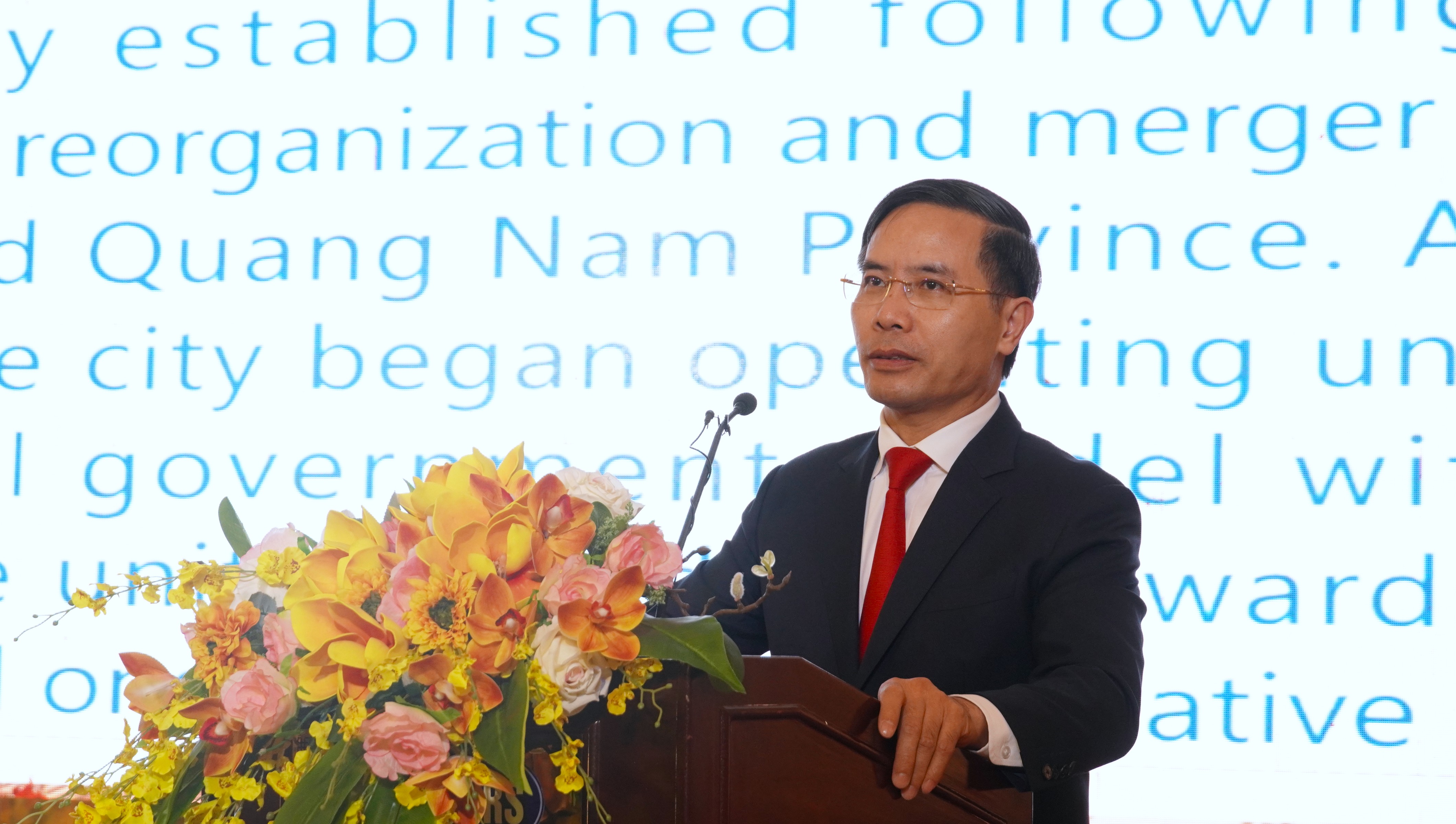 Chủ tịch UBND thành phố Phạm Đức Ấn thông tin đến kiều bào những thành tựu của Đà Nẵng trong năm 2025, đồng thời nhấn mạnh kết quả đó không chỉ nhờ sự quan tâm lãnh đạo, chỉ đạo của Trung ương, sự đoàn kết, nỗ lực của Đảng bộ, chính quyền và nhân dân thành phố mà còn có sự đóng góp rất quý báu của cộng đồng người Việt Nam ở nước ngoài và bà con đồng hương Đà Nẵng đang sinh sống, làm việc tại các tỉnh, thành trên cả nước.