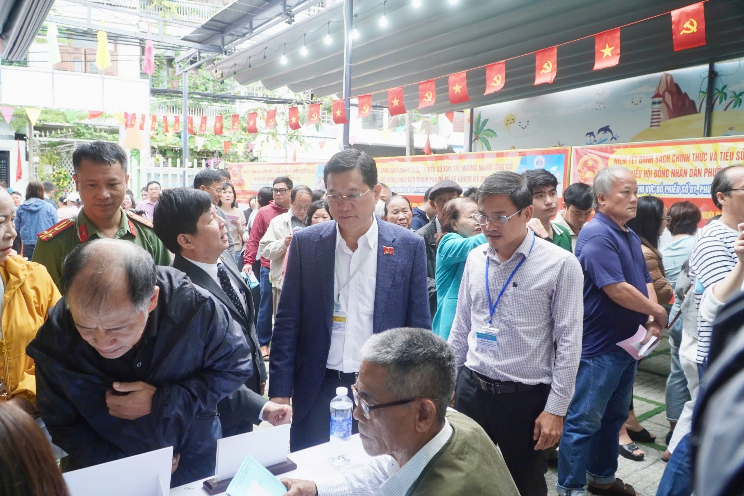 * Phó Bí thư Thường trực Thành ủy Nguyễn Đình Vĩnh kiểm tra công tác tổ chức bầu cử tại các phường Ngũ Hành Sơn, An Hải và Sơn Trà.