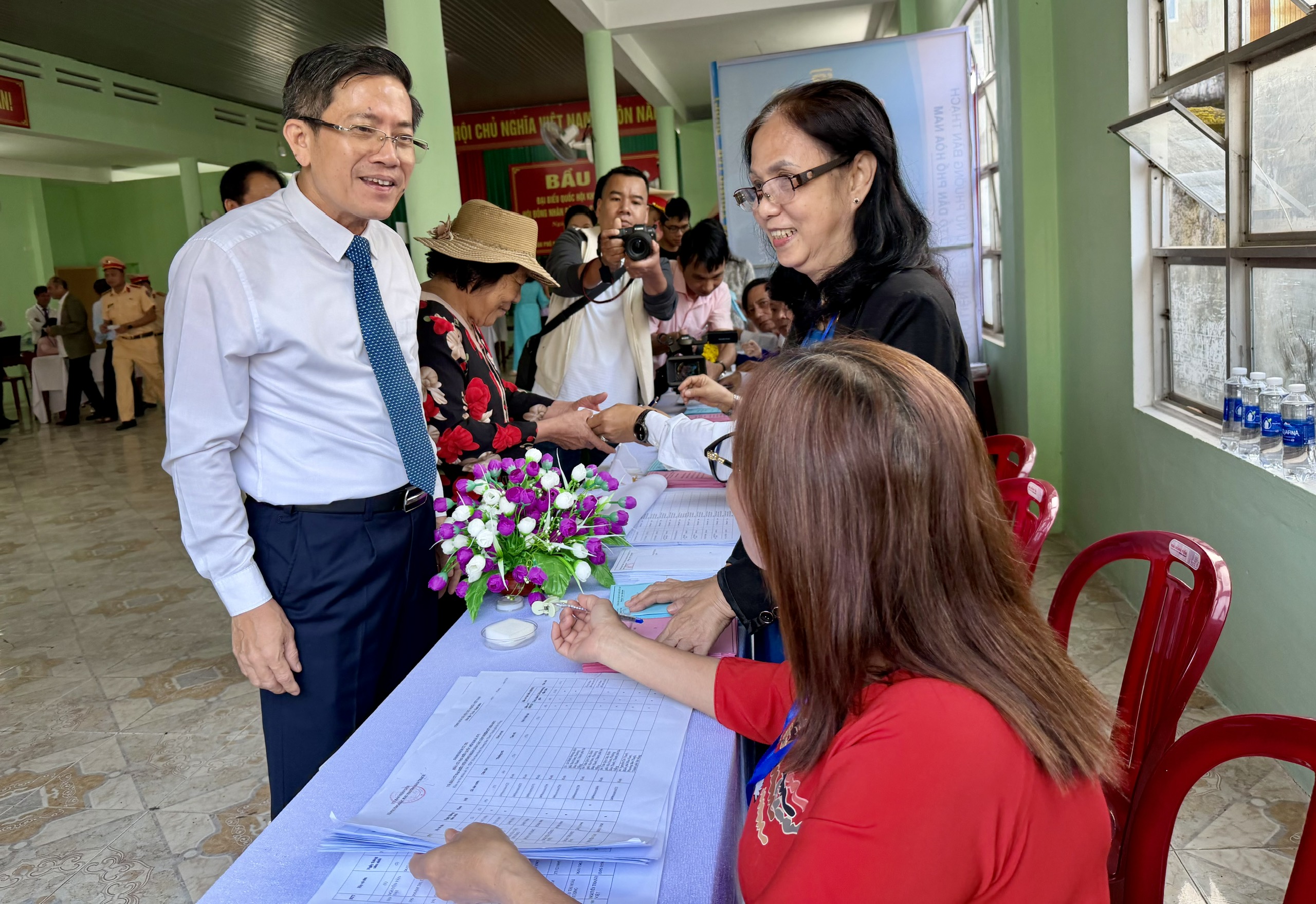 * Phó Chủ tịch UBND thành phố Trần Nam Hưng kiểm tra công tác tổ chức bầu cử tại các phường Tam Kỳ, Bàn Thạch, Hương Trà và Quảng Phú.