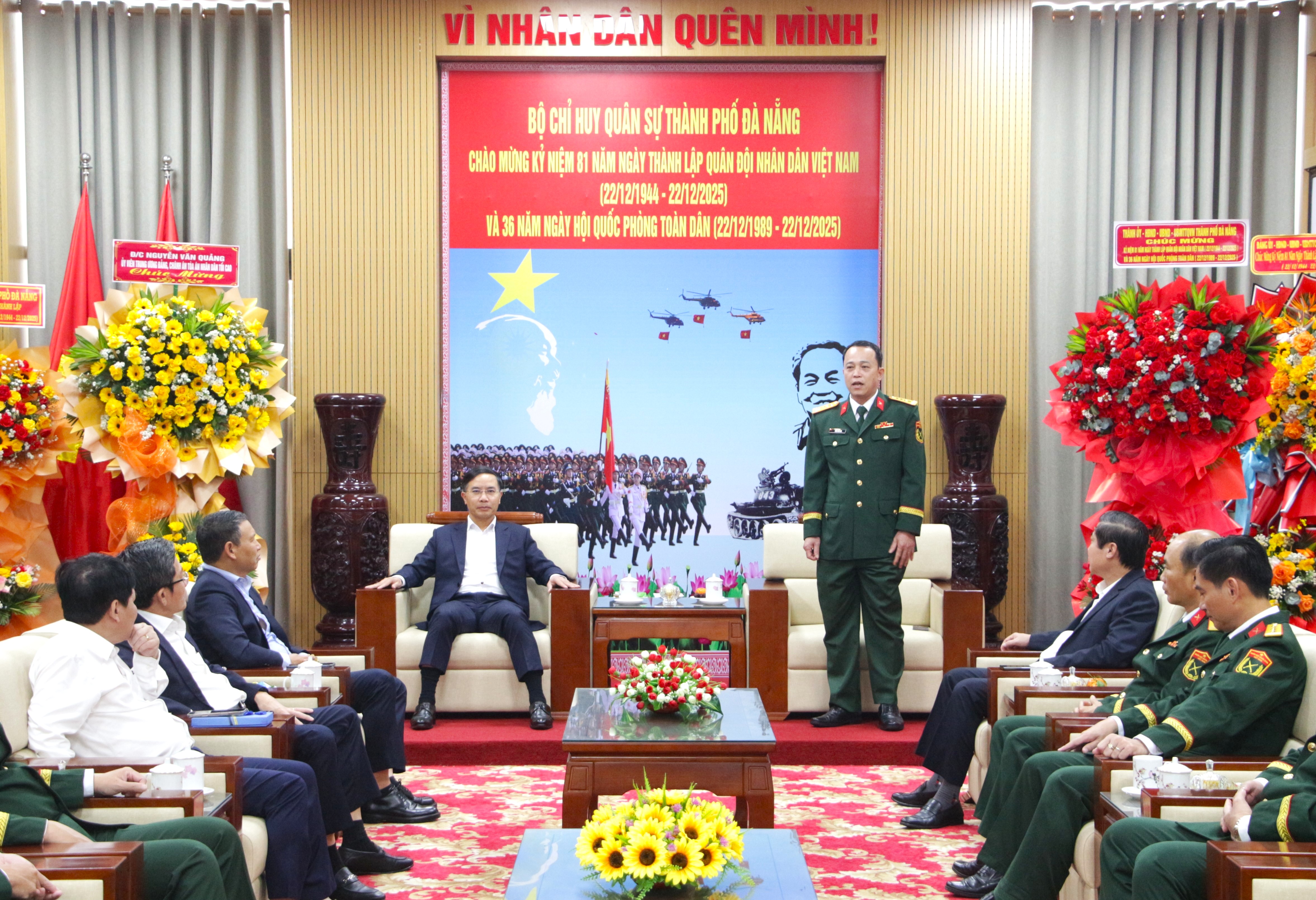 Sáng 22-12, Chủ tịch UBND thành phố Phạm Đức Ấn cùng Phó Chủ tịch Thường trực UBND thành phố Hồ Kỳ Minh, Phó Chủ tịch UBND thành phố Phan Thái Bình, Phó Chủ tịch UBND thành phố Trần Nam Hưng đến thăm, chúc mừng Bộ Chỉ huy Quân sự thành phố. Cùng đi có Chánh Văn phòng UBND thành phố Nguyễn Như Công.
